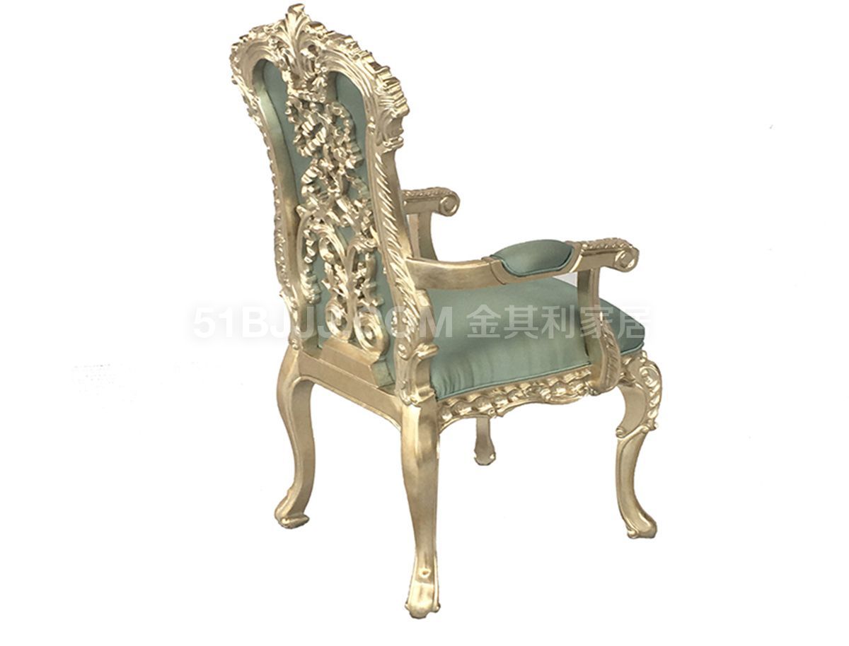 意式香檳銀箔扶手椅 意式法式歐式精雕貼箔休閑椅