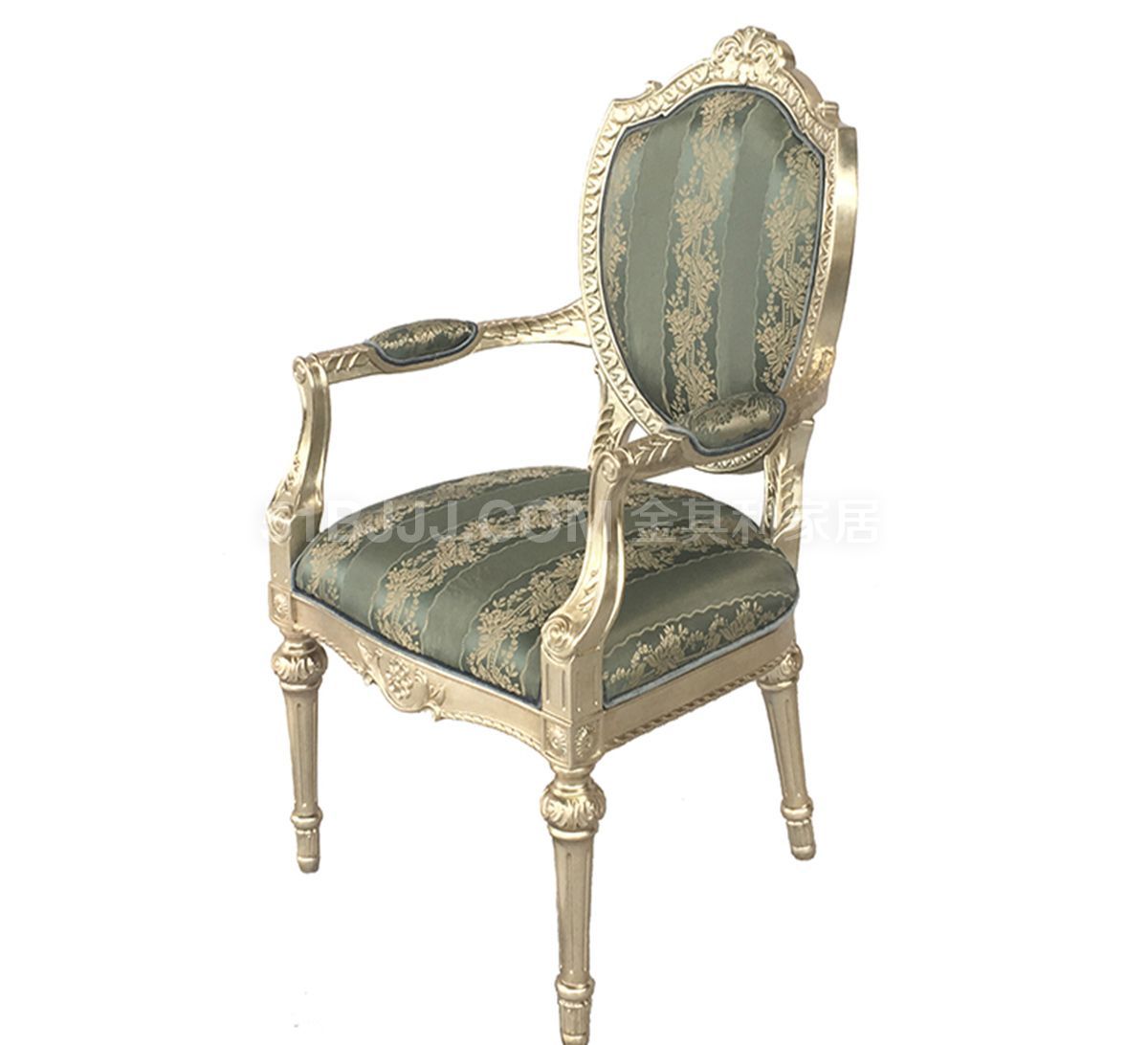 意式香檳銀箔扶手椅 意式法式歐式精雕貼箔休閑椅