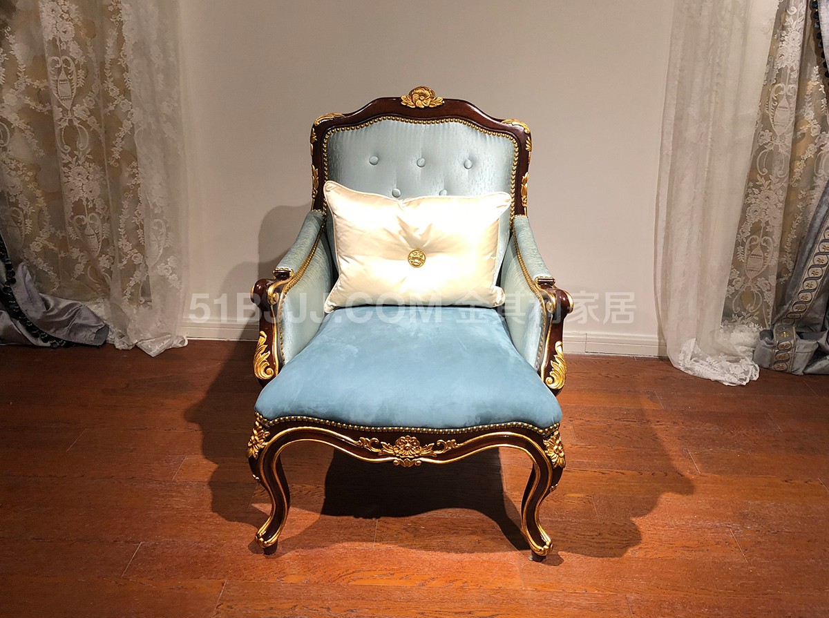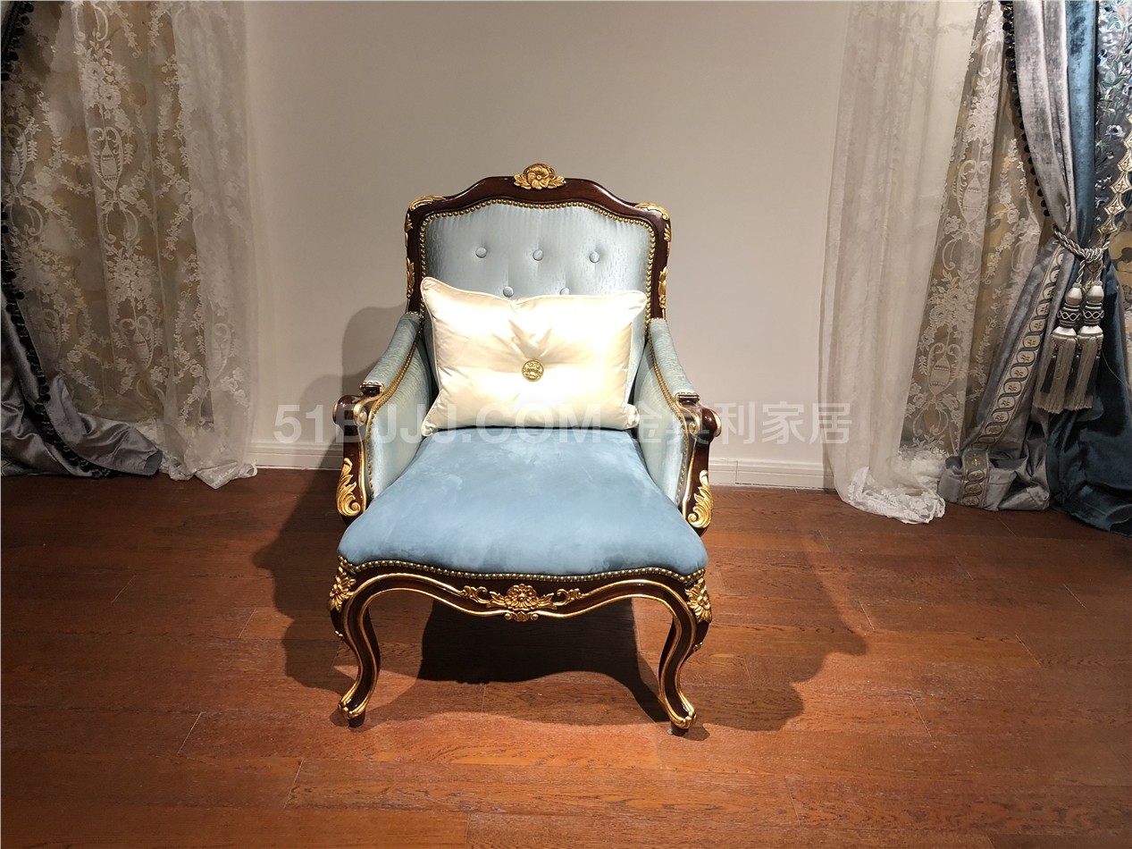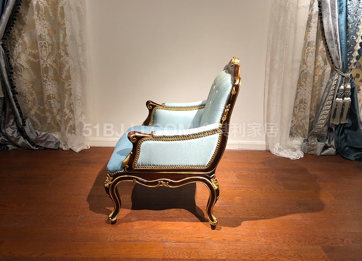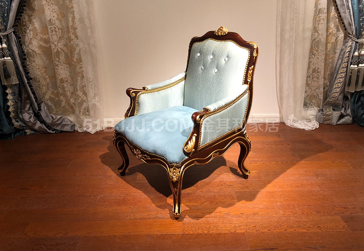 金其利頭層牛皮單人休閑椅 意式法式歐式金雕貼箔休閑椅實拍