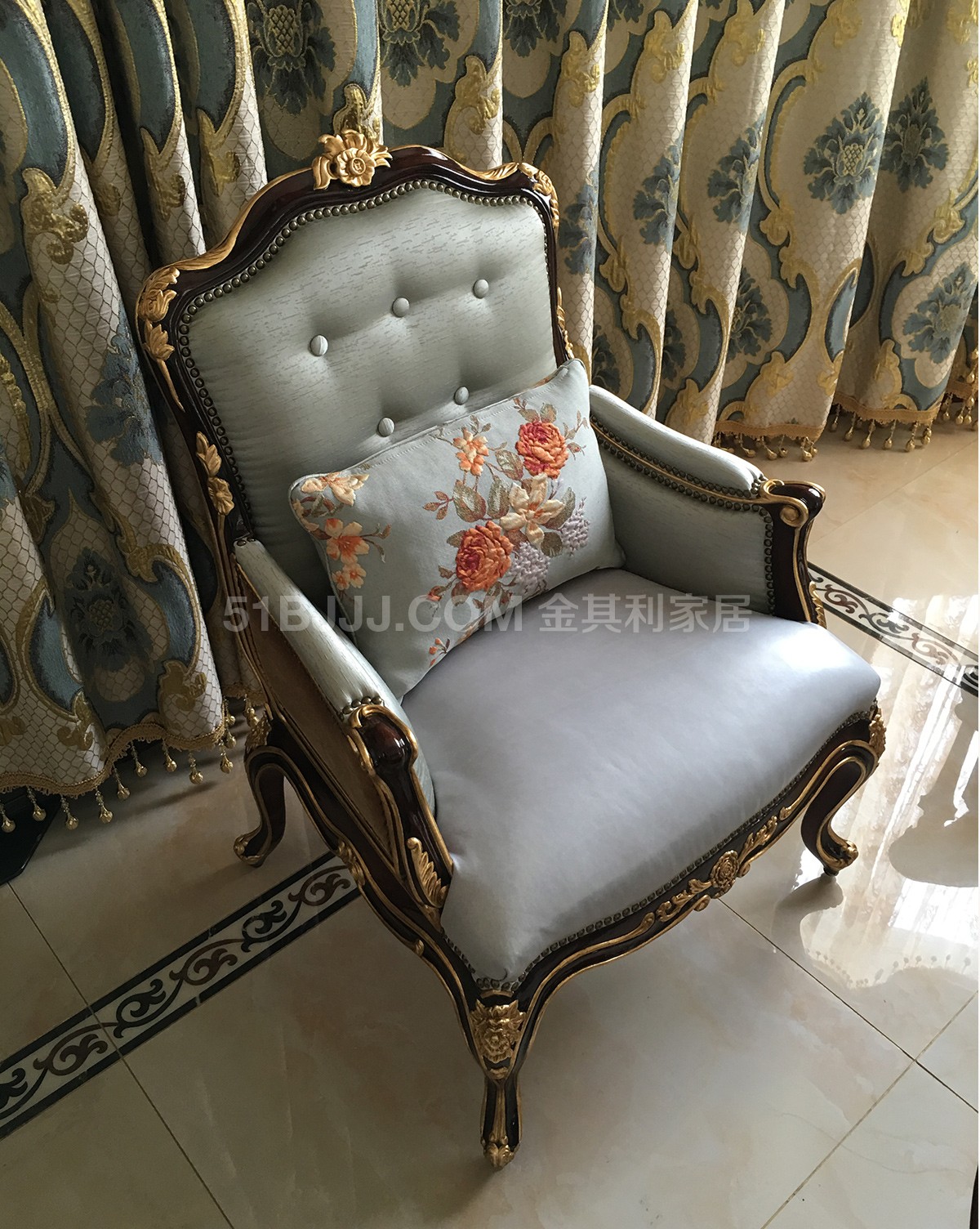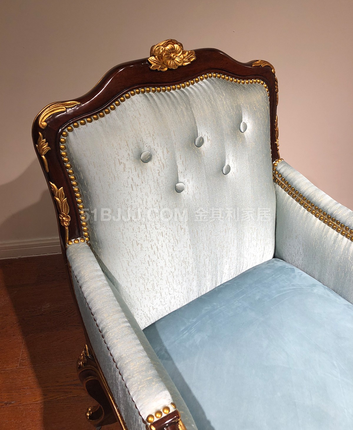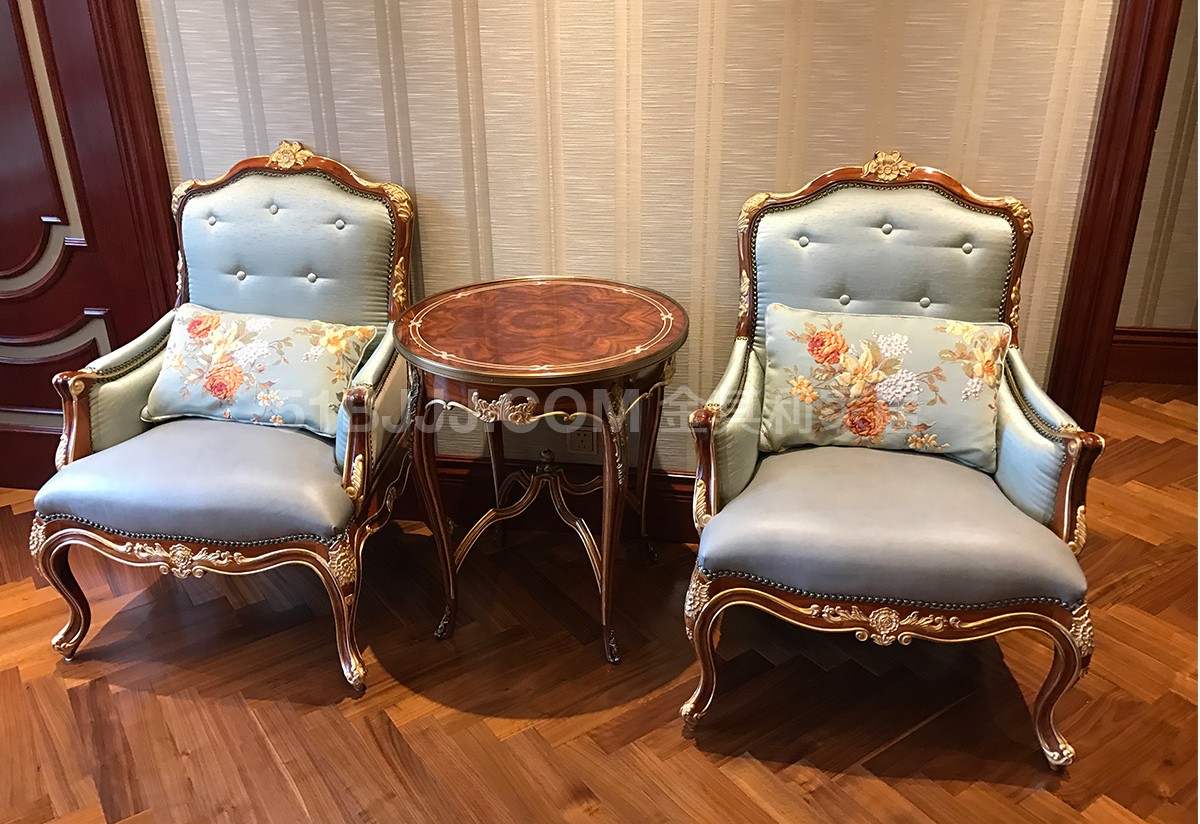金其利頭層牛皮單人休閑椅 意式法式歐式金雕貼箔休閑椅實拍