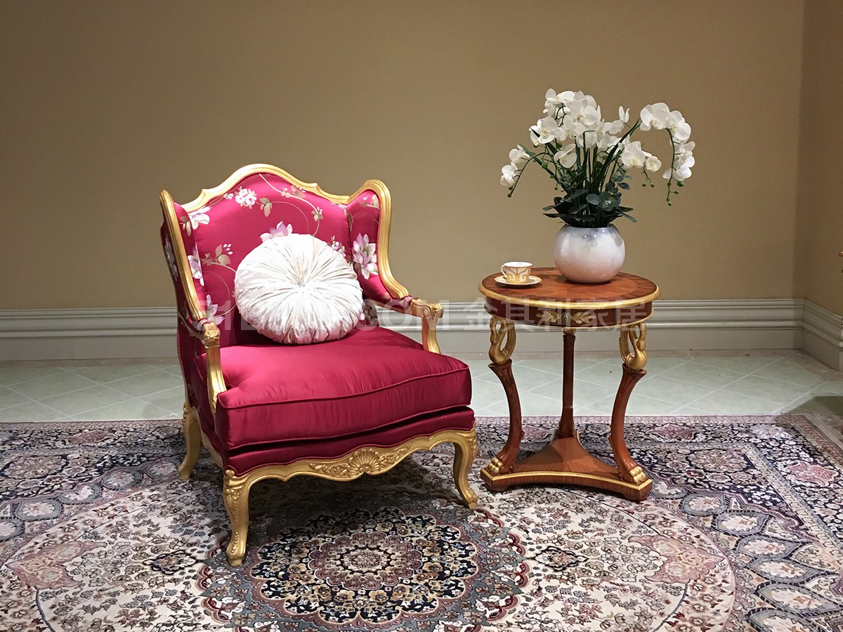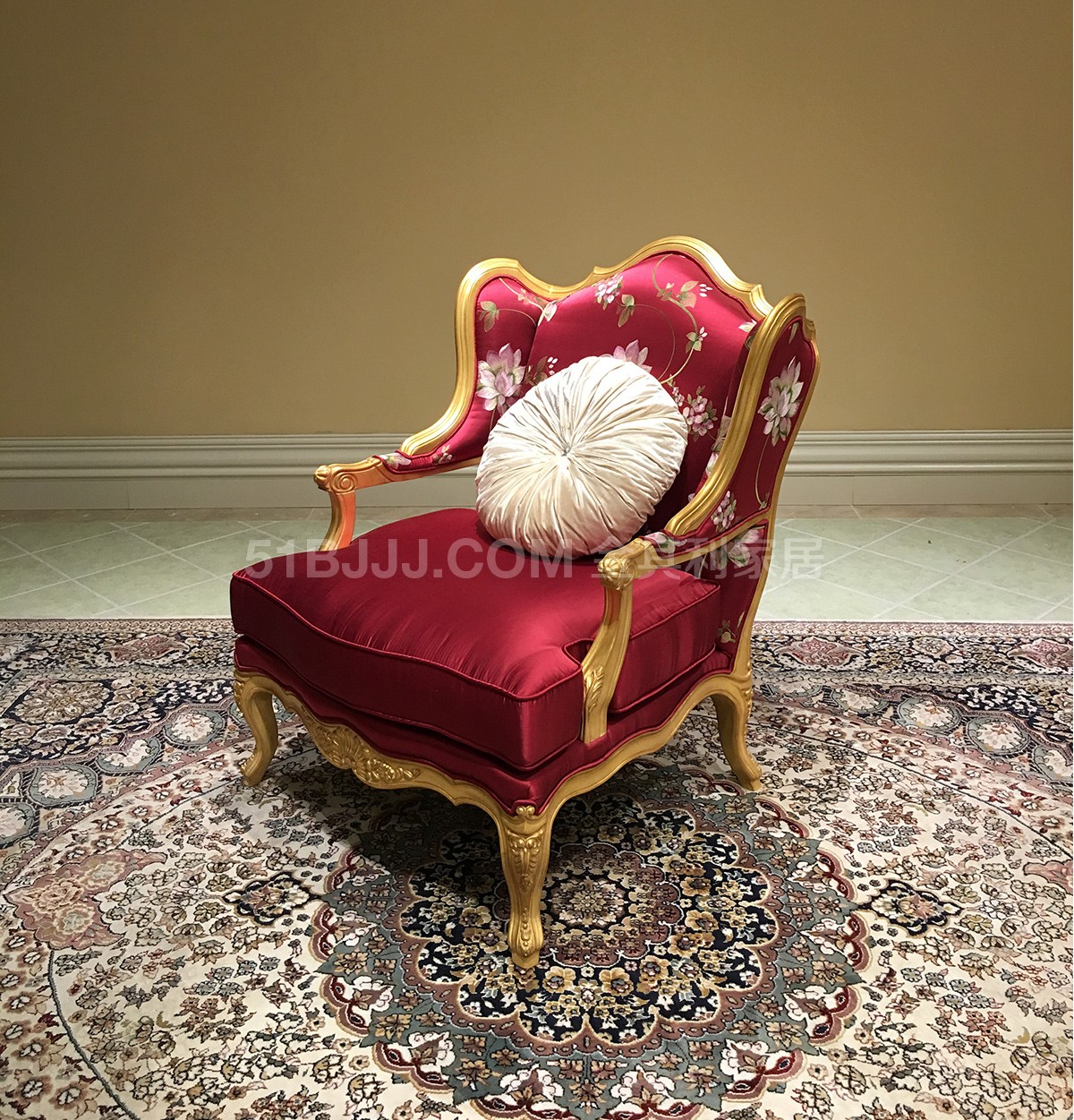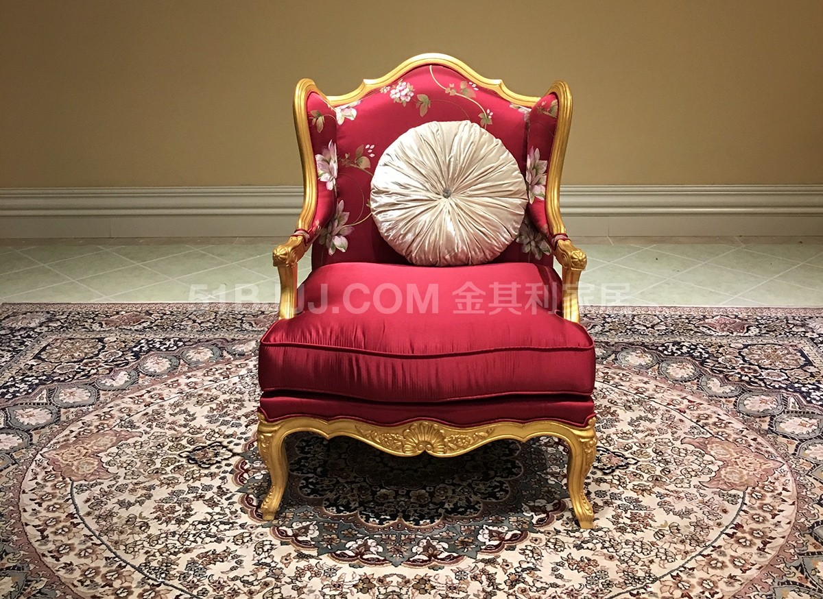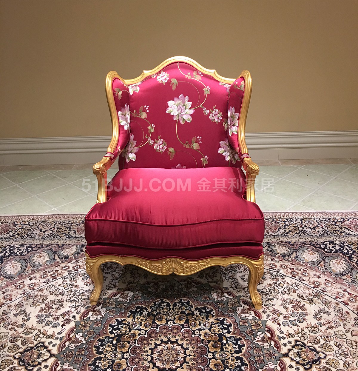 意式宮廷風(fēng)單人休閑椅 意式法式歐式金雕貼箔休閑椅