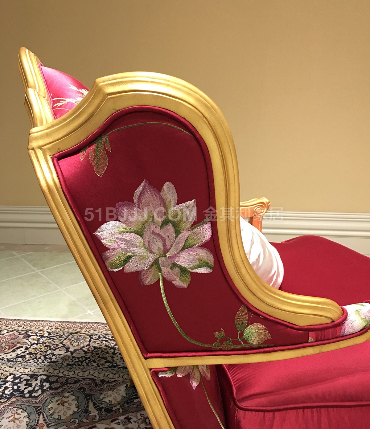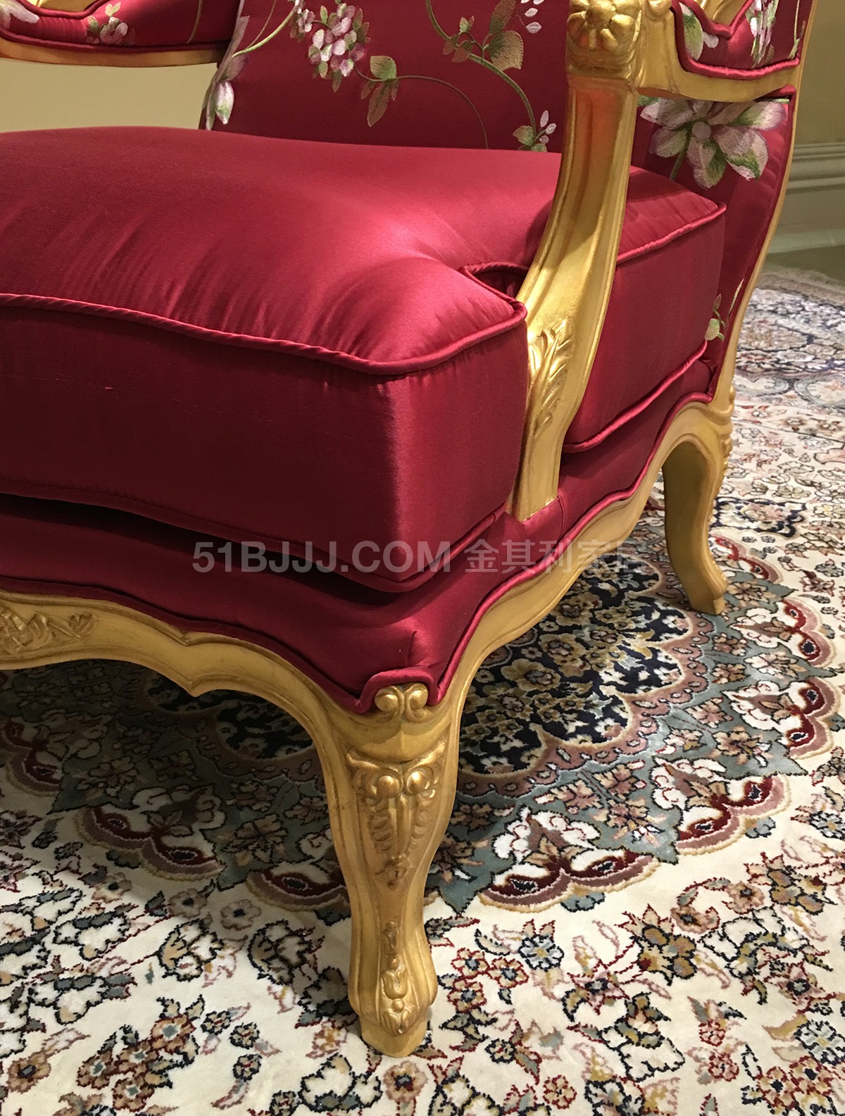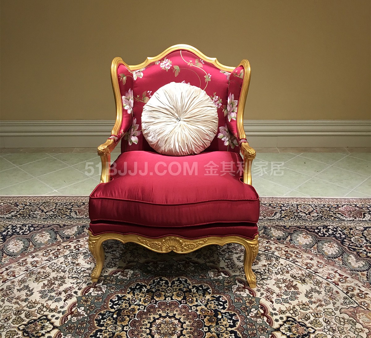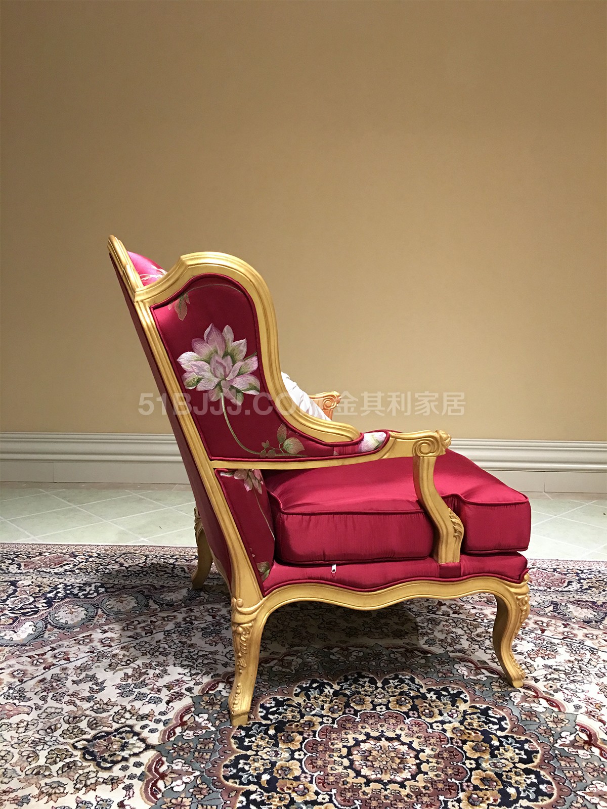 意式宮廷風(fēng)單人休閑椅 意式法式歐式金雕貼箔休閑椅