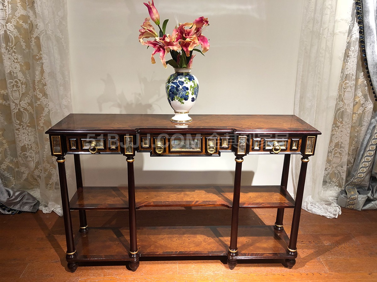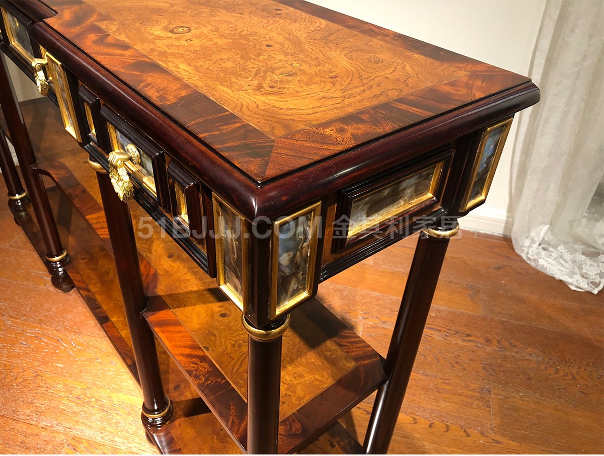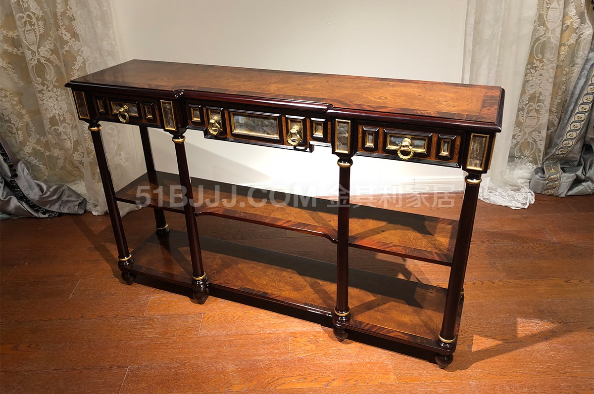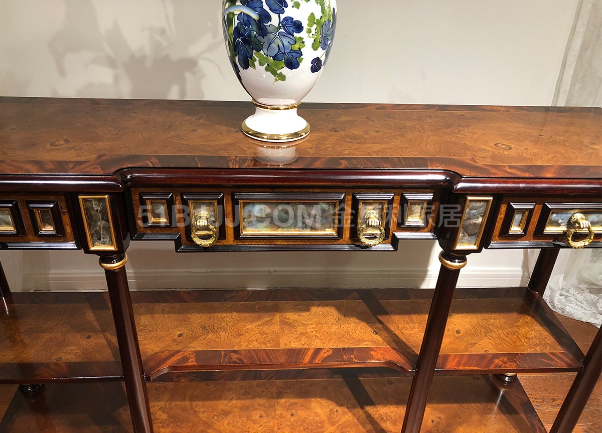 金其利家具 亞歷山大英式古堡沙發(fā)背幾貝殼銅件儲(chǔ)物抽屜款玄關(guān)柜