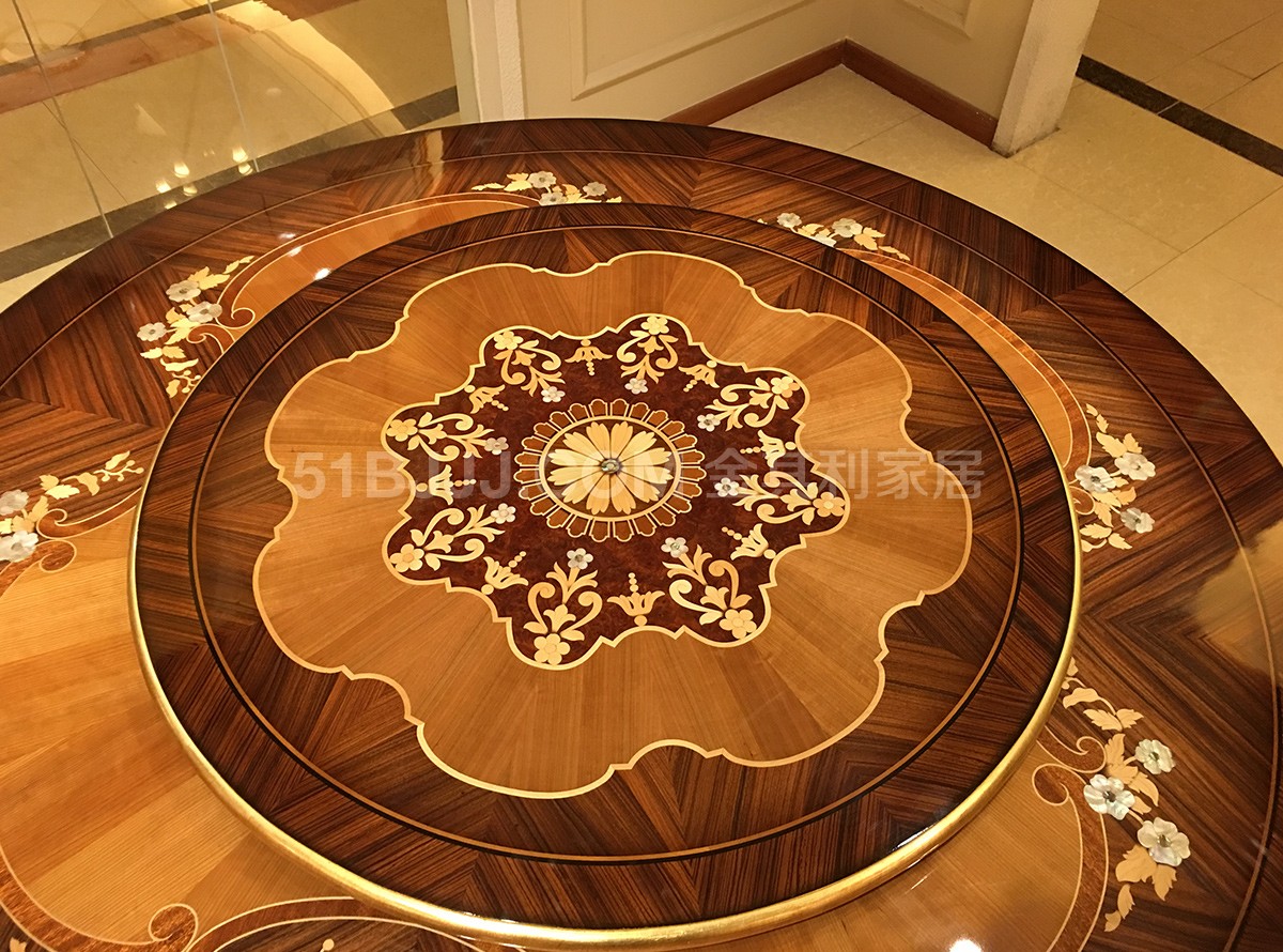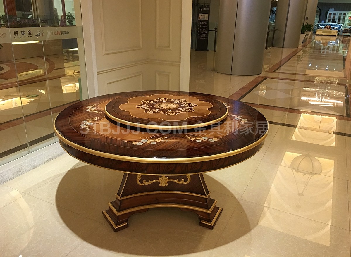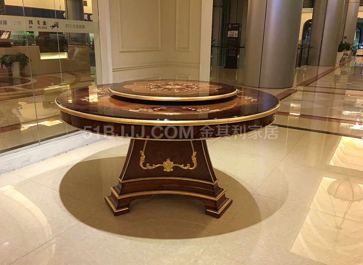 金其利意式嵌貝拼花圓餐桌 可旋轉(zhuǎn)餐臺(tái)超大六人桌法式provasi家具實(shí)拍