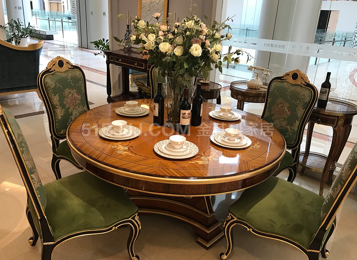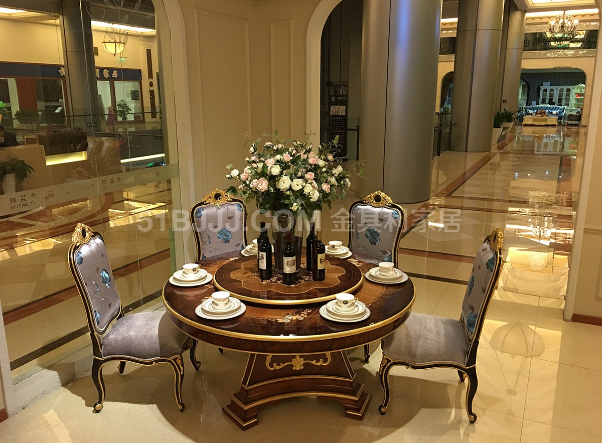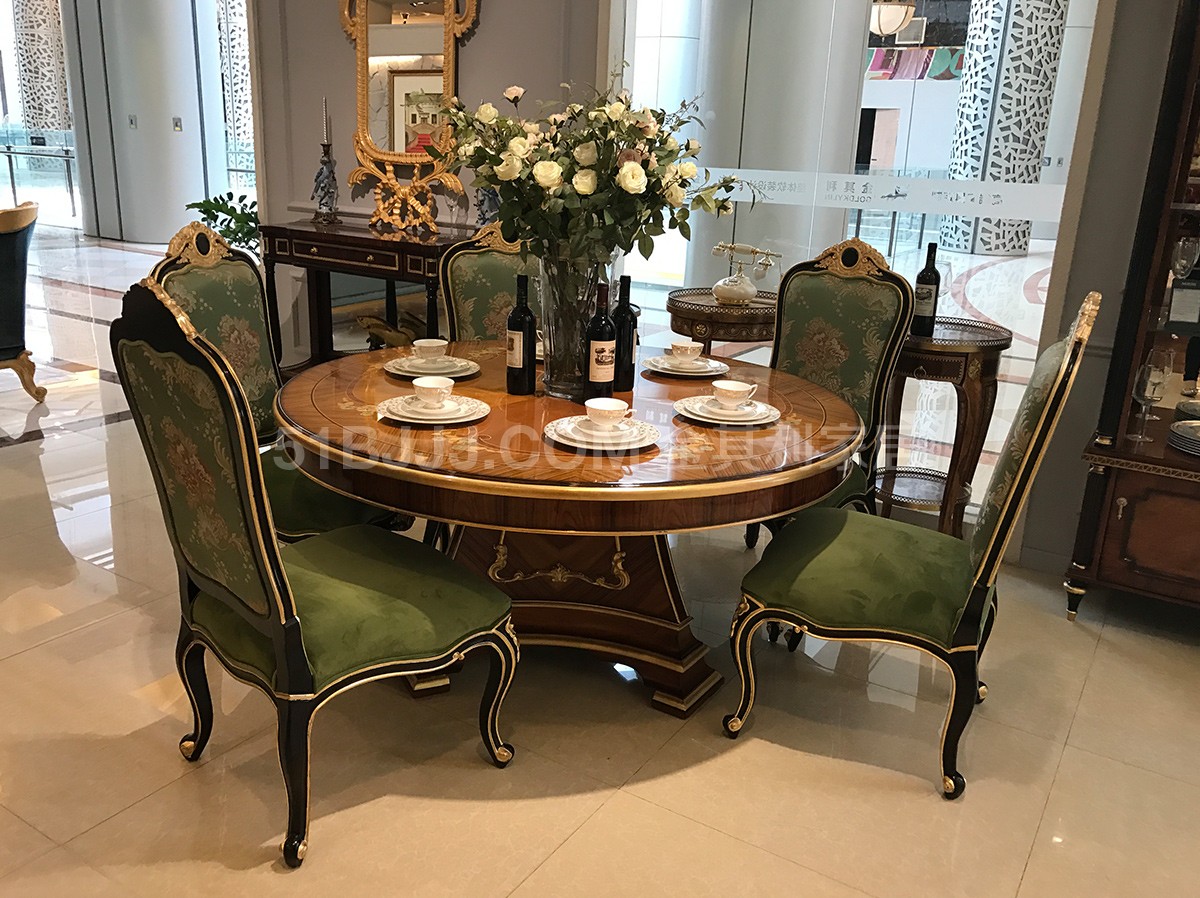 金其利意式嵌貝拼花圓餐桌 可旋轉(zhuǎn)餐臺(tái)超大六人桌法式provasi家具實(shí)拍