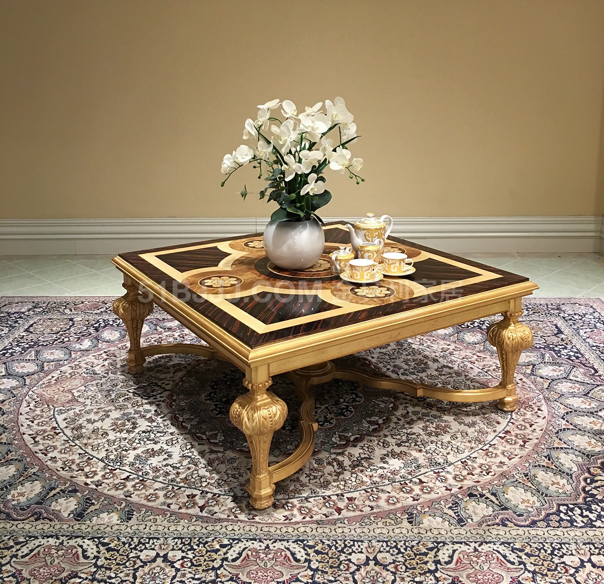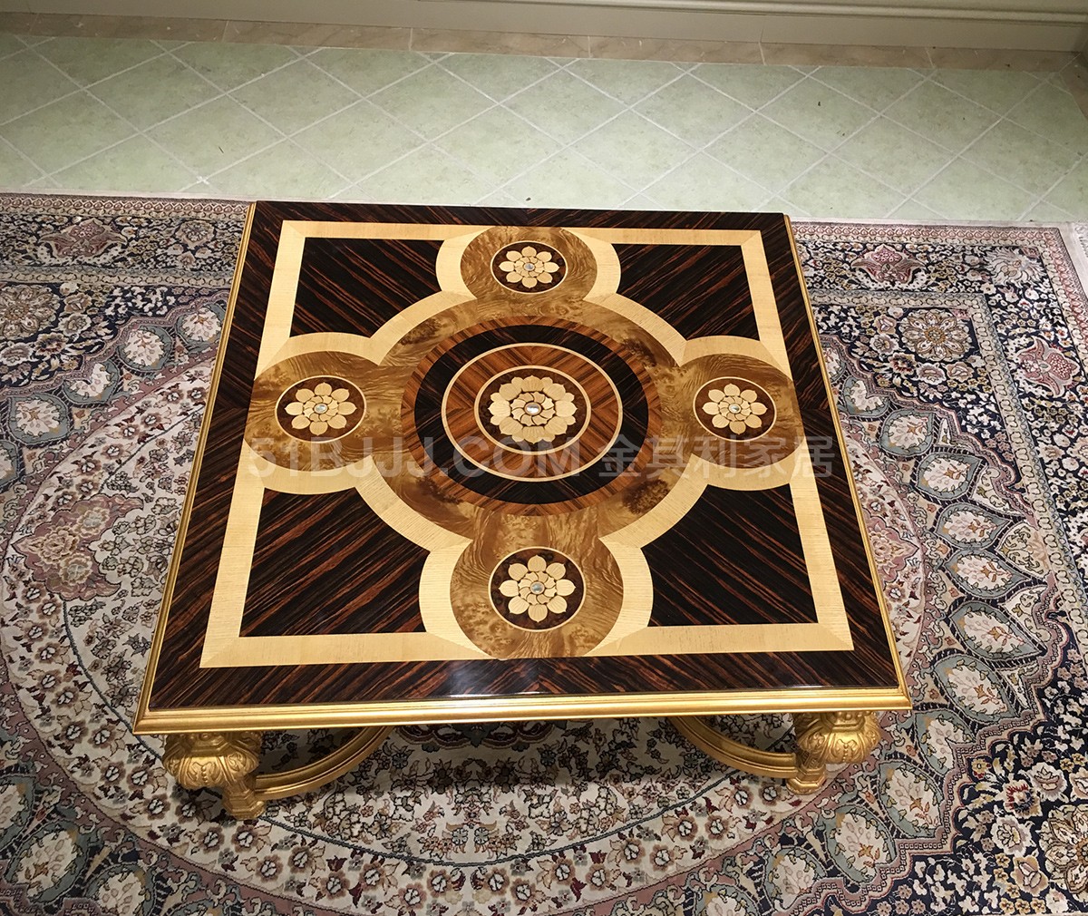 金其利家具意式實木雕刻方茶幾歐式桌面拼花嵌貝provasi家具實拍