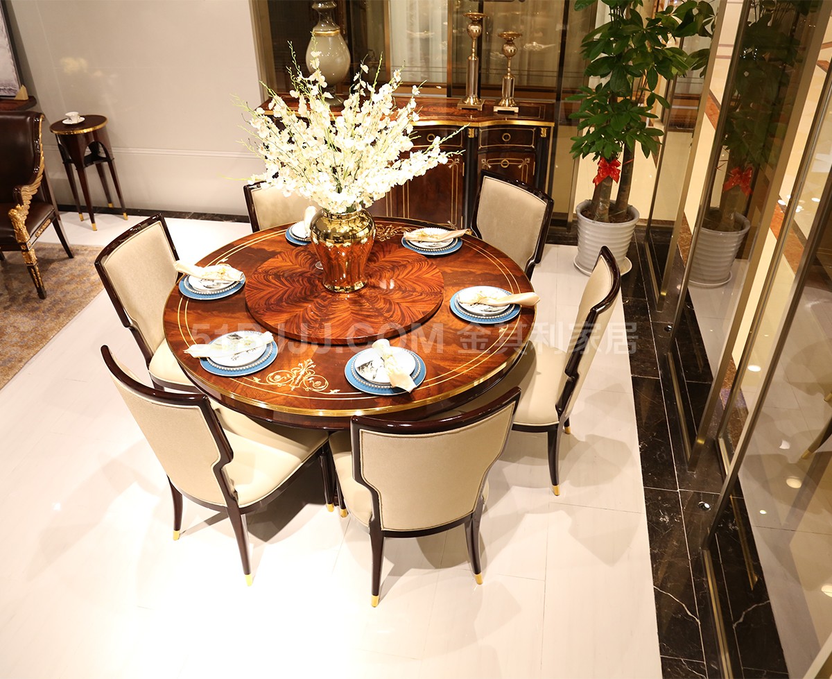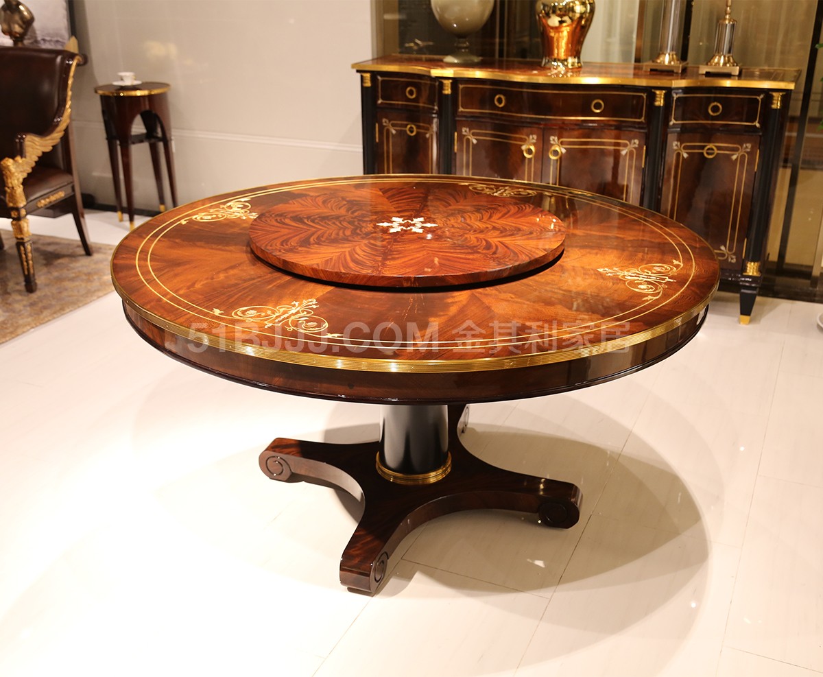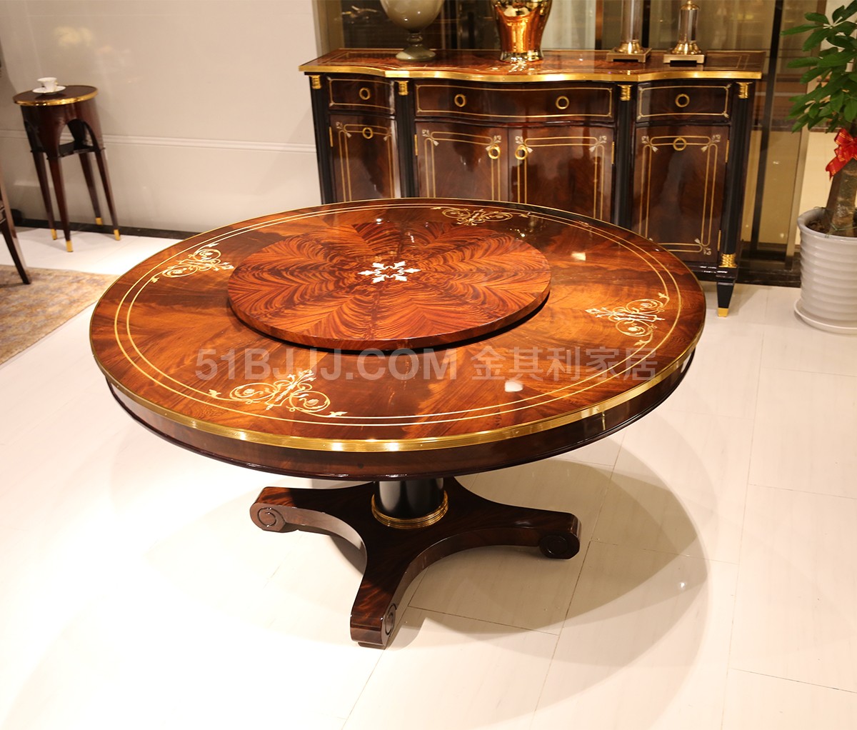金其利家具奧斯卡圓餐桌別墅大宅新古典牛津創(chuàng)意銅件鑲嵌貝殼