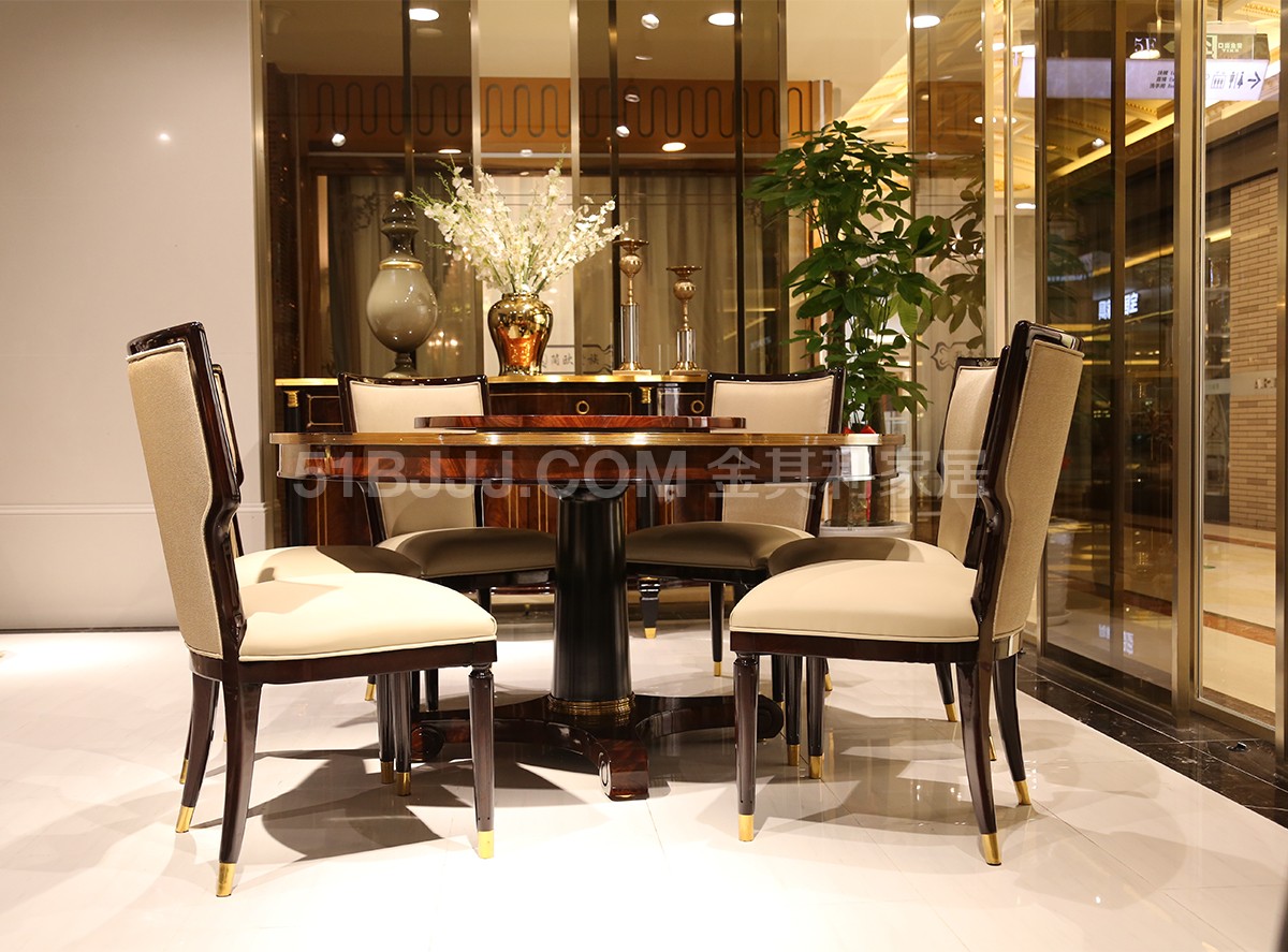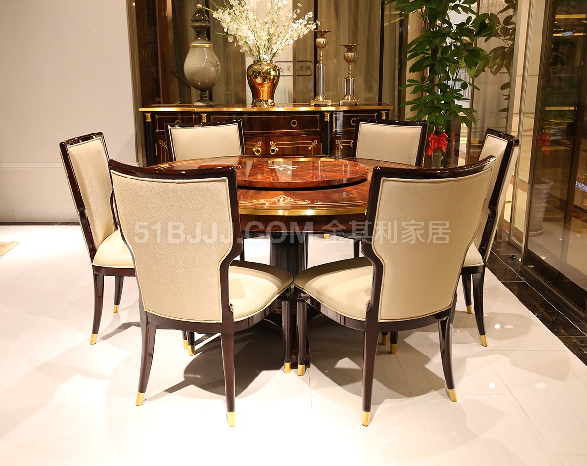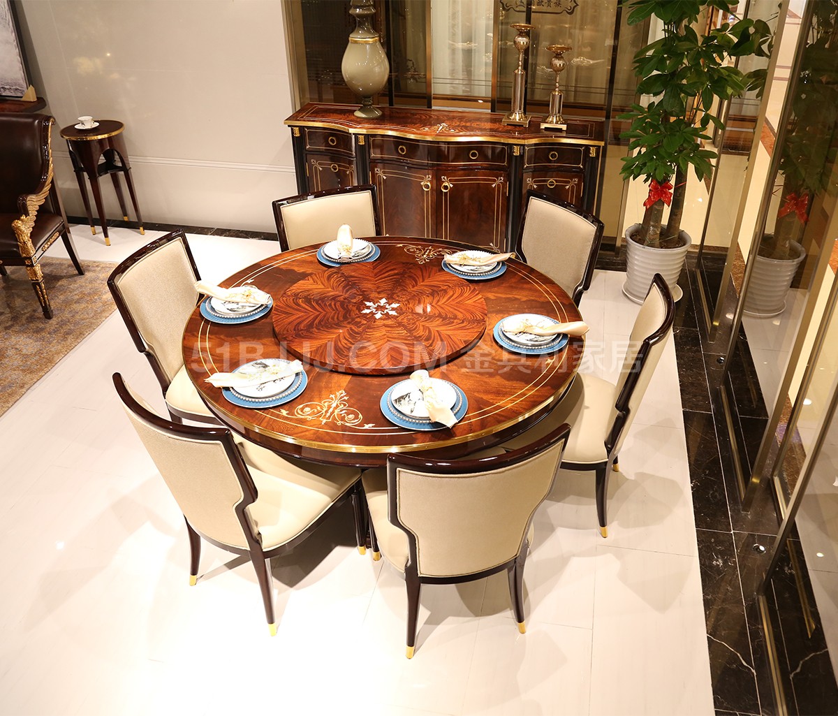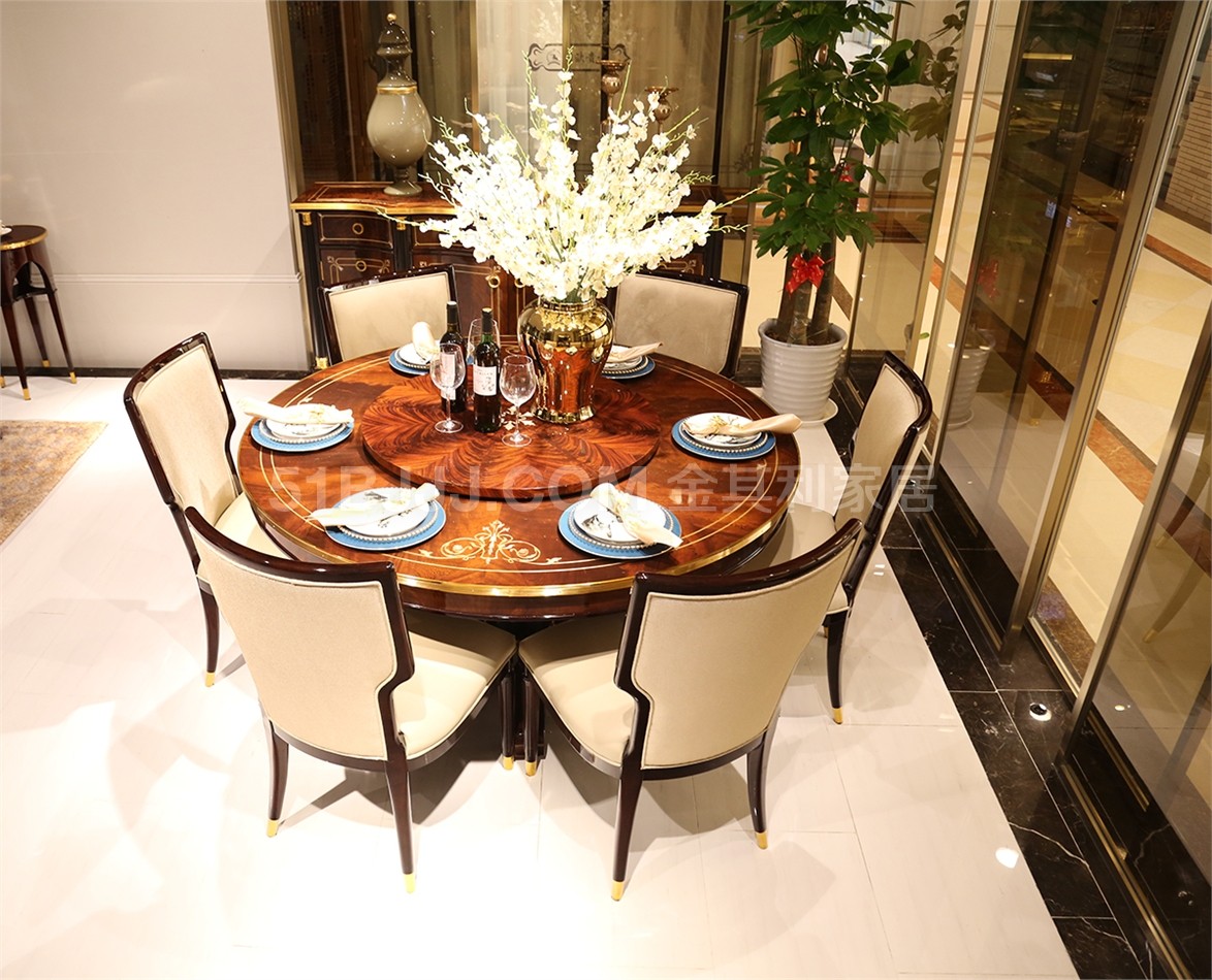 金其利家具奧斯卡圓餐桌別墅大宅新古典牛津創(chuàng)意銅件鑲嵌貝殼