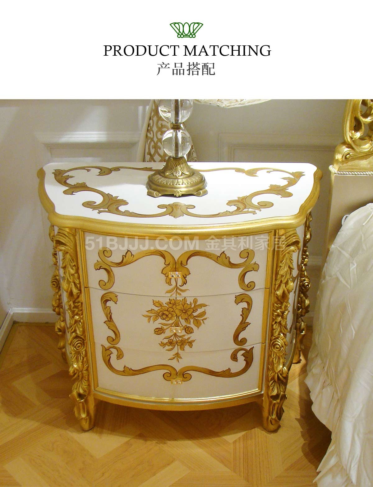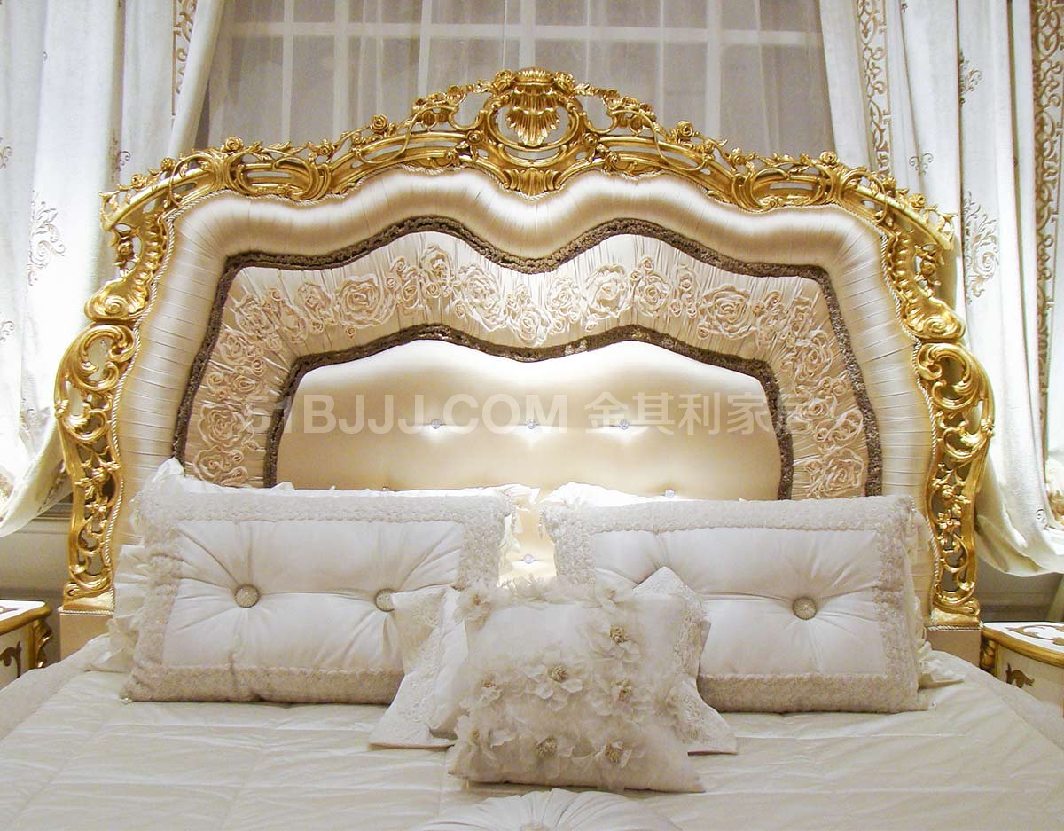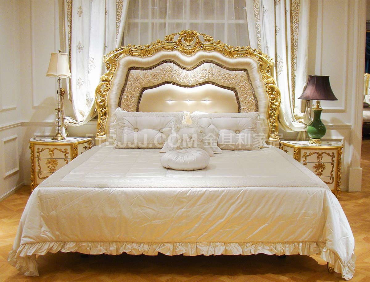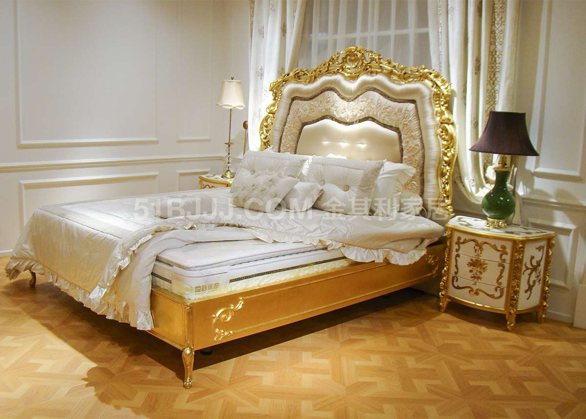 金其利家具新款雙人床歐式新古典立體繡花彩繪款床頭柜