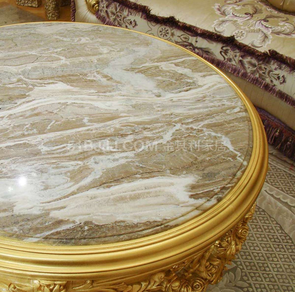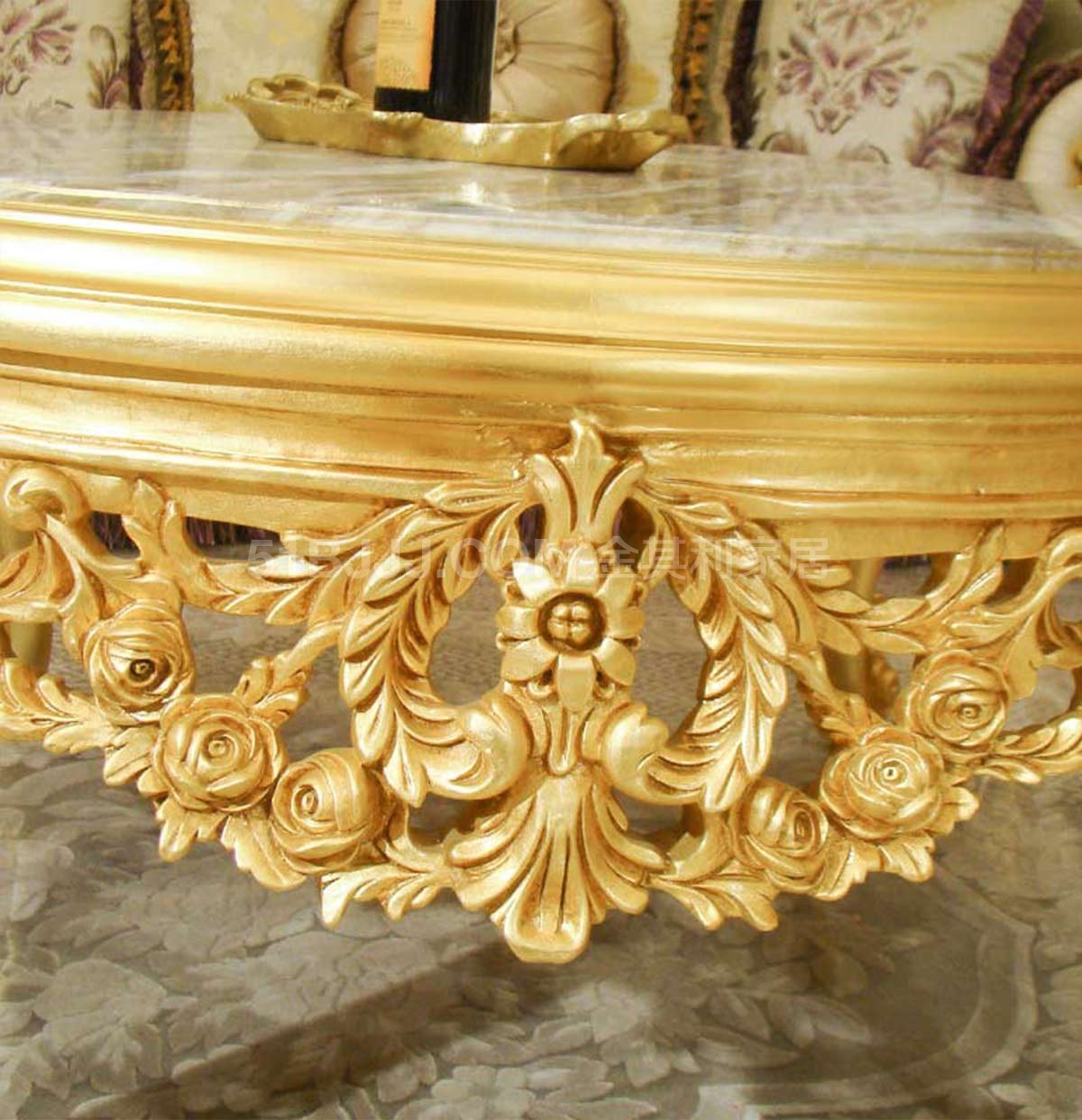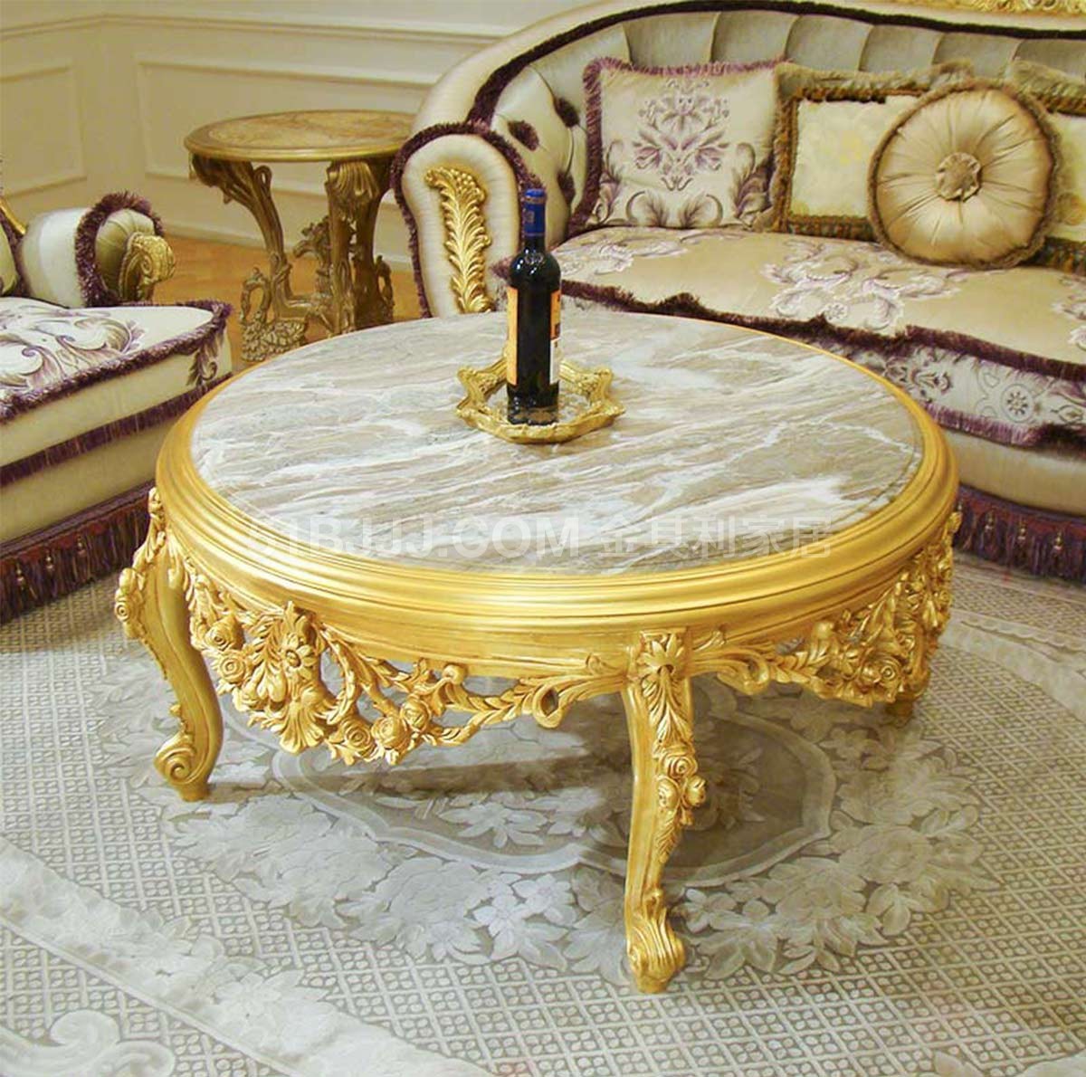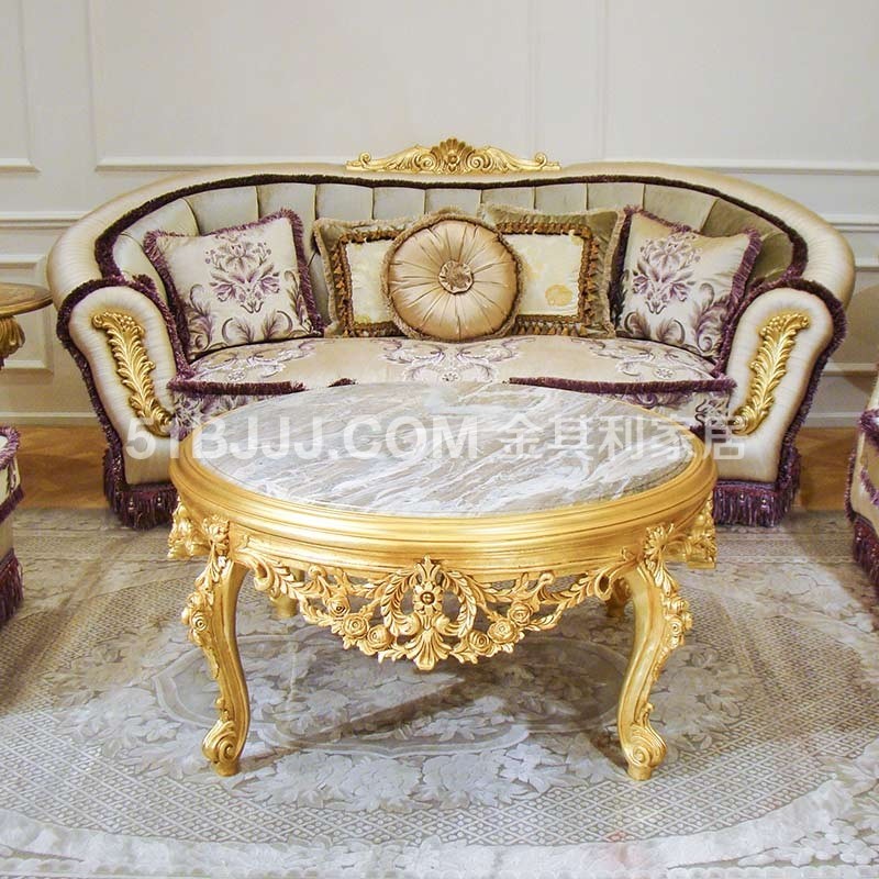 金其利家具大理石圓茶幾法式實(shí)木雕刻金箔家具