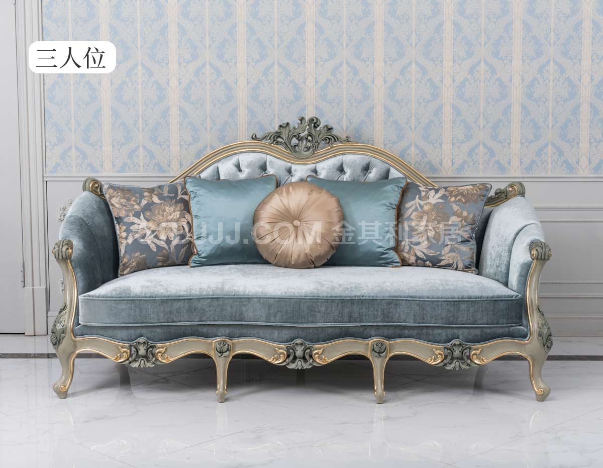 金其利家具米蘭達(dá)實(shí)木實(shí)木雕刻沙發(fā)1+2+3組合沙發(fā)
