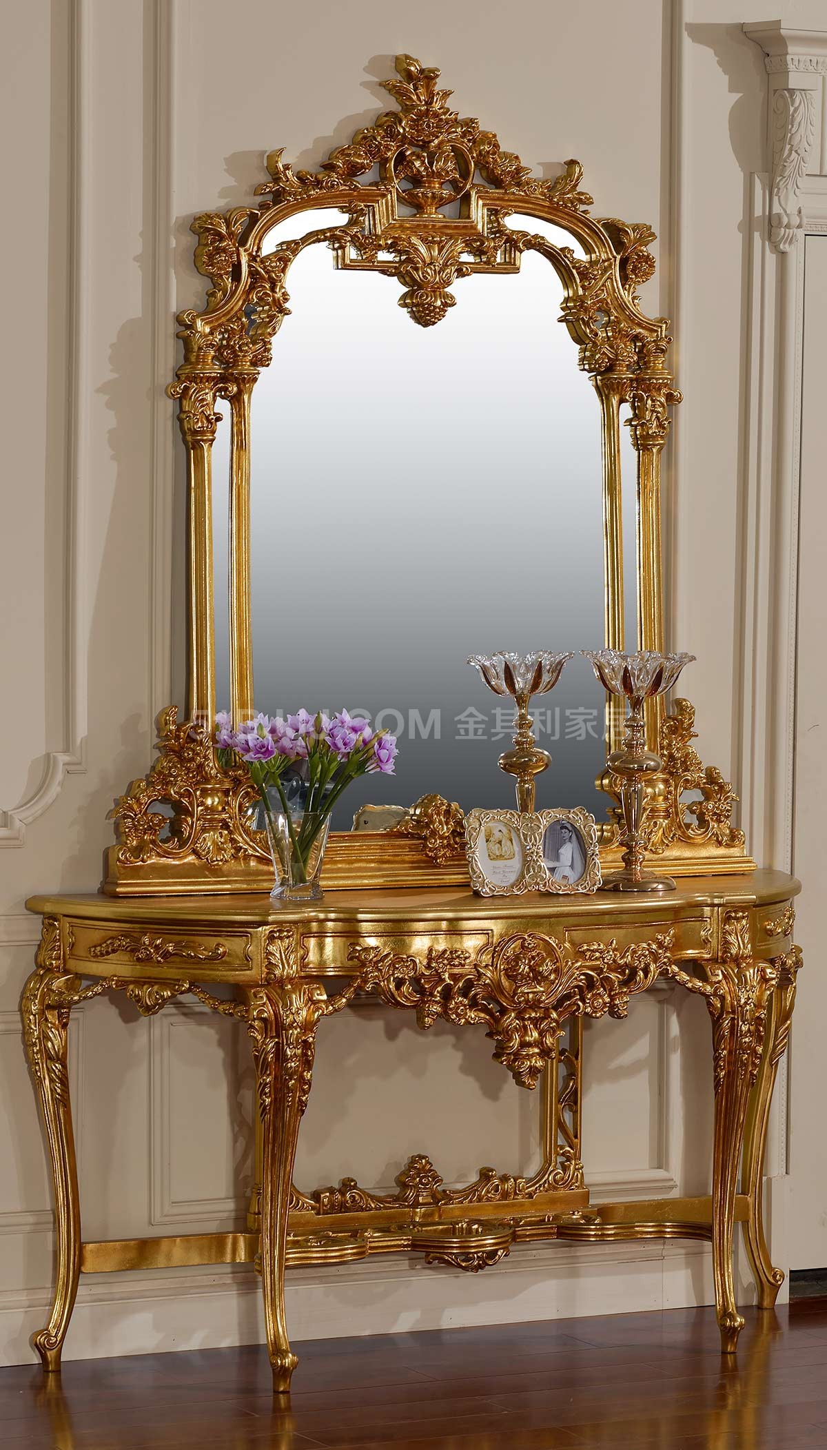 金其利家具米蘭達(dá)玄關(guān)柜實木裝飾鏡法式高檔別墅大宅門廳柜