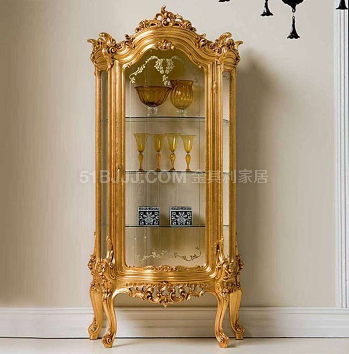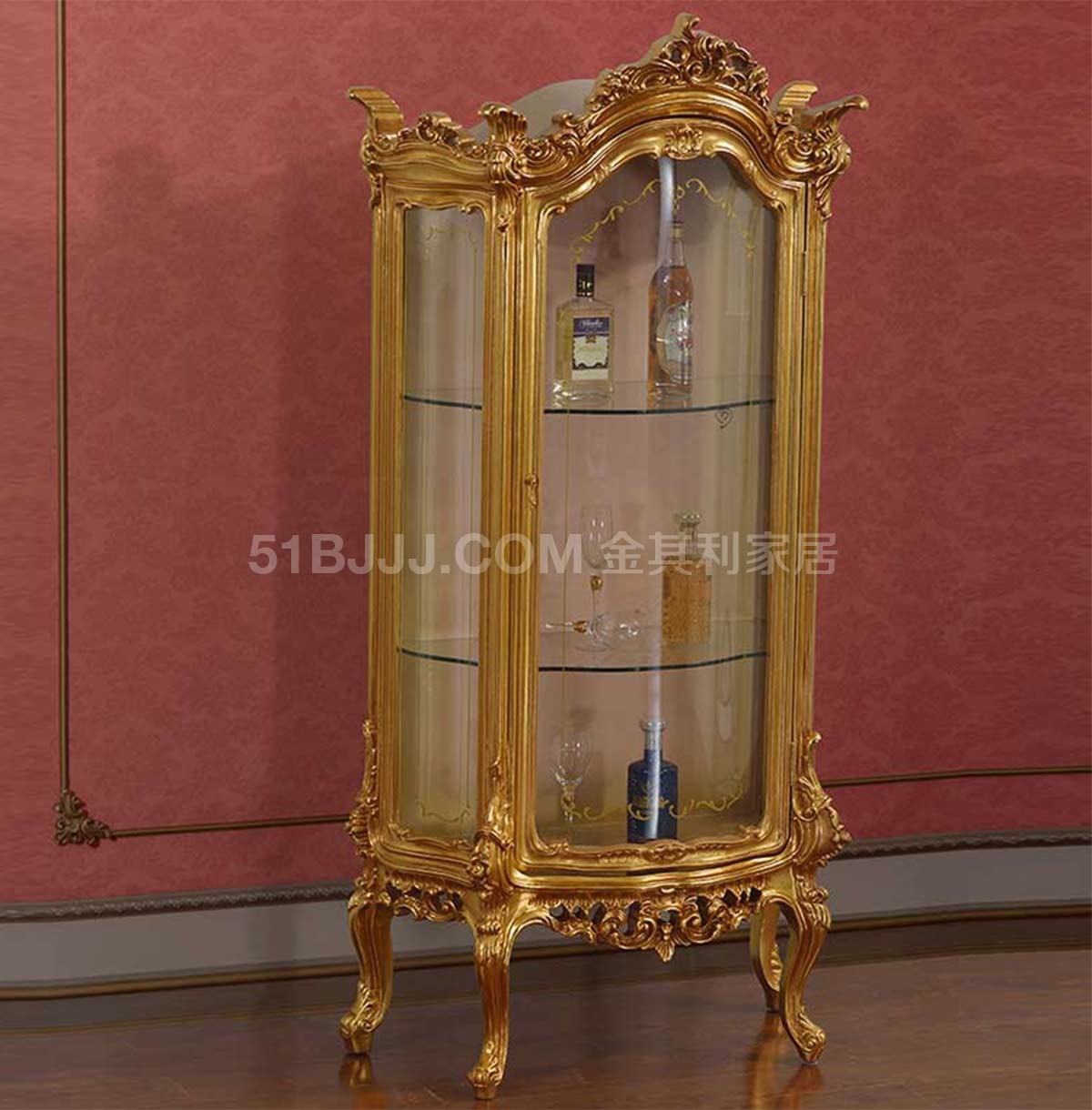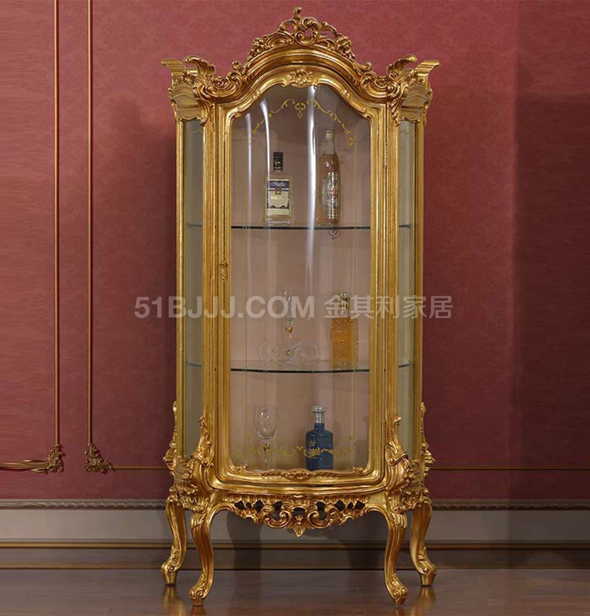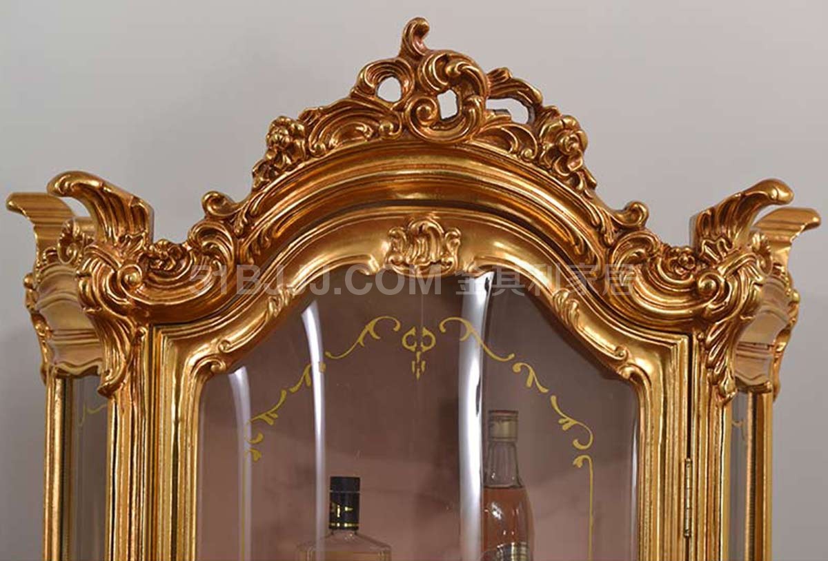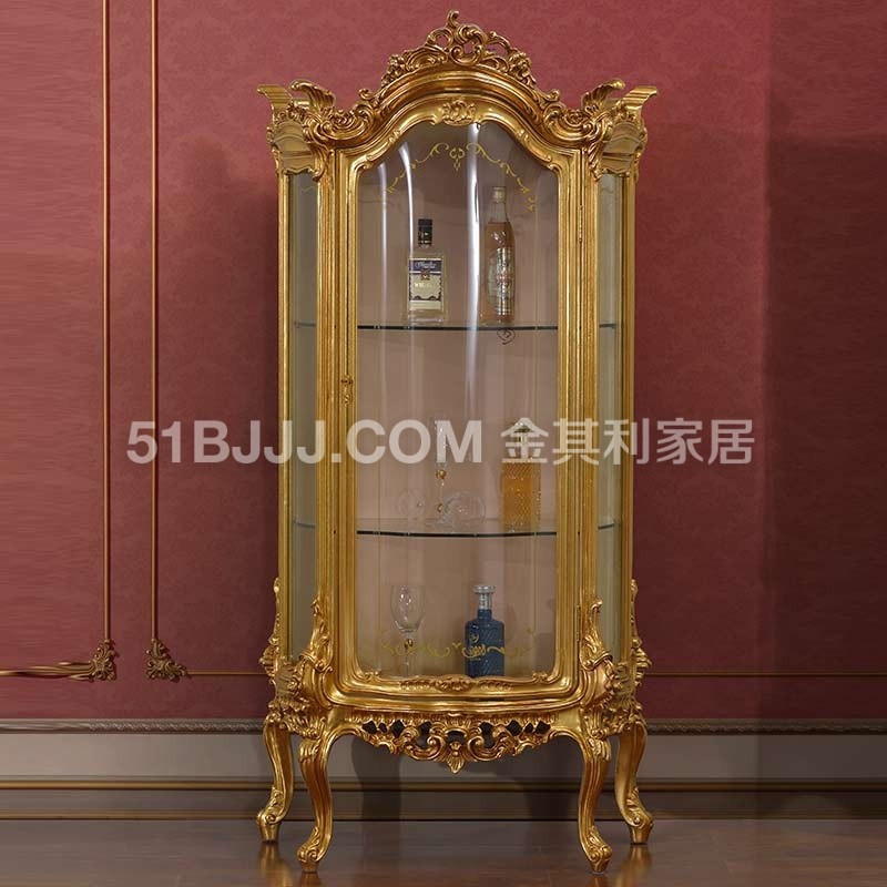 金其利法式宮廷金箔酒柜客廳展示柜意大利歐式玻璃單門(mén)酒柜