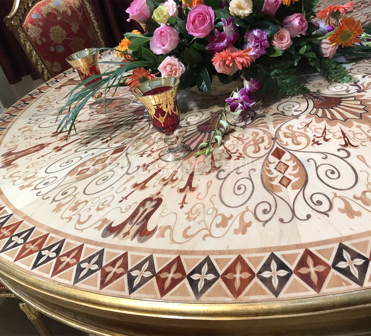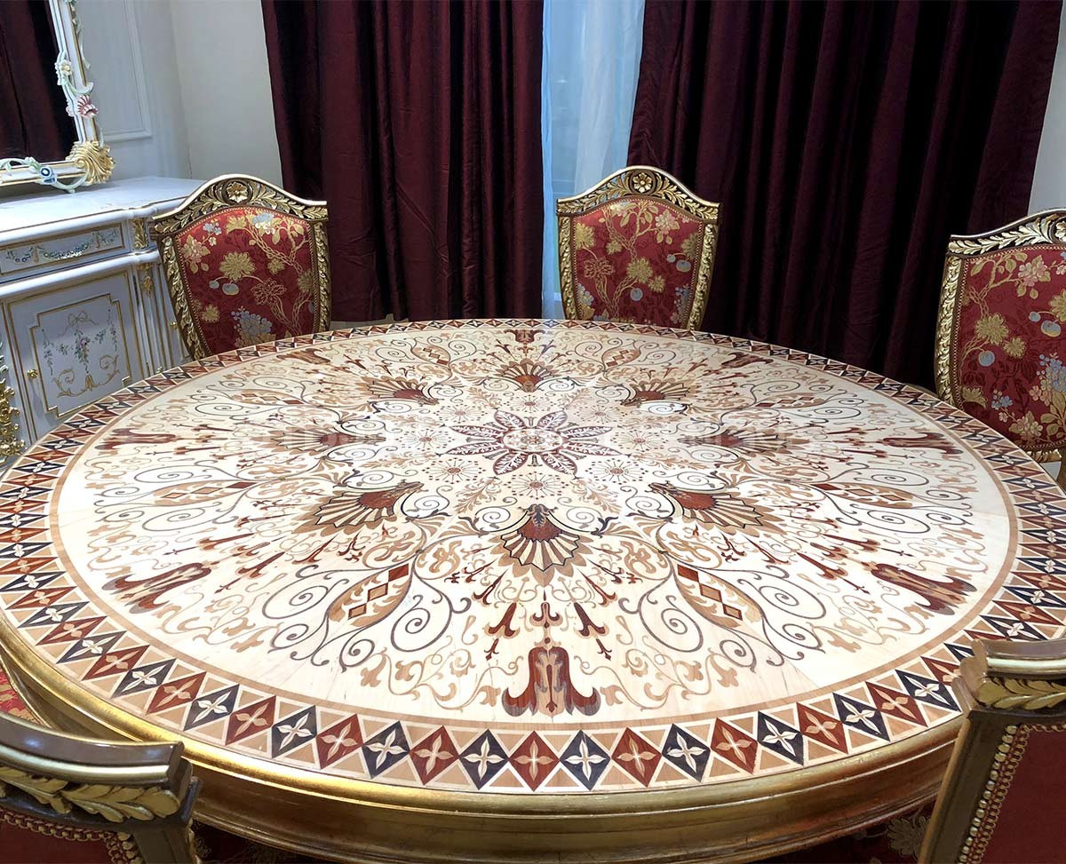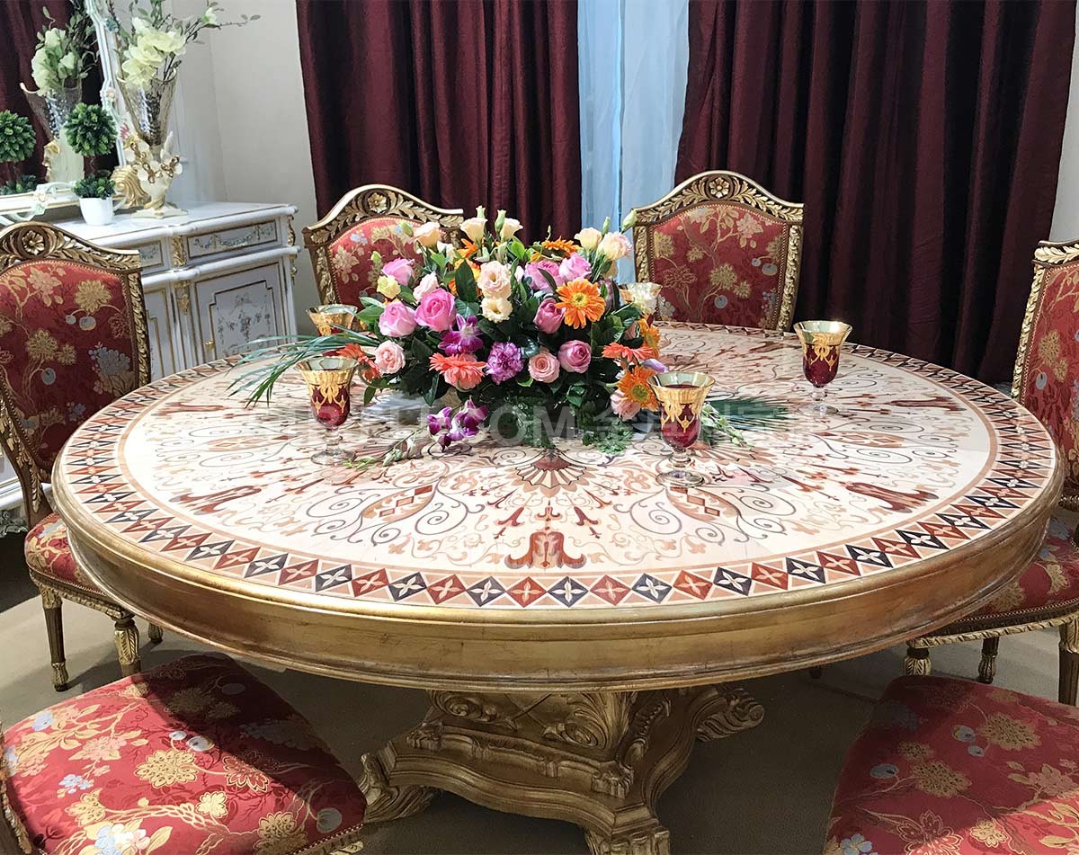 金其利家具米蘭餐桌椅別墅大宅會所歐法拼花新古典加大圓桌