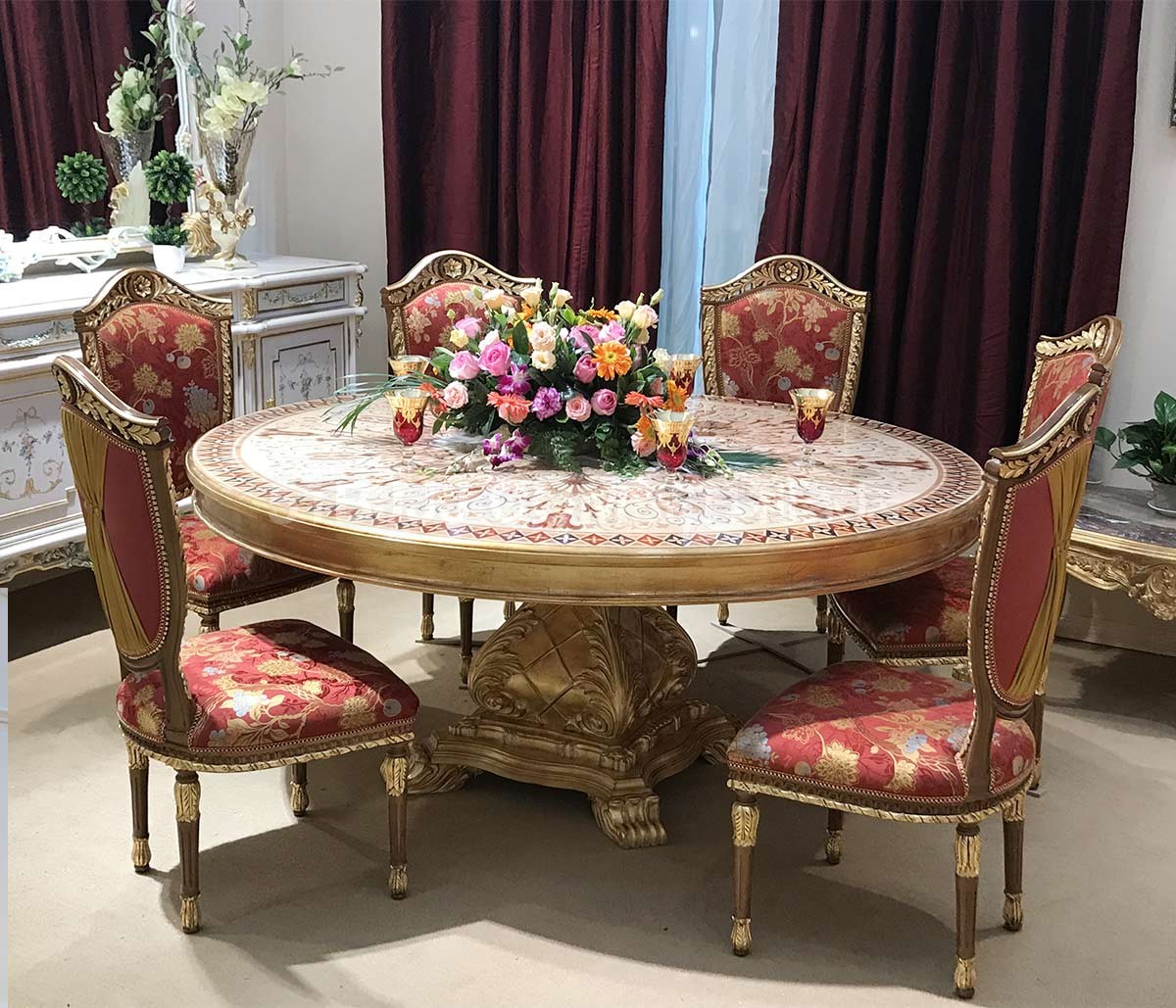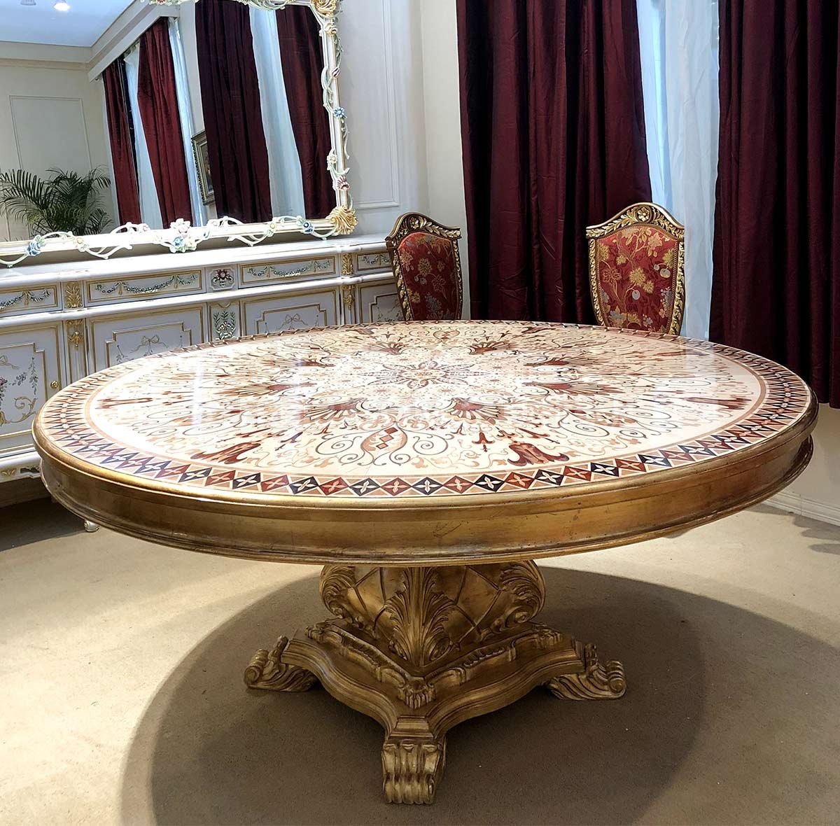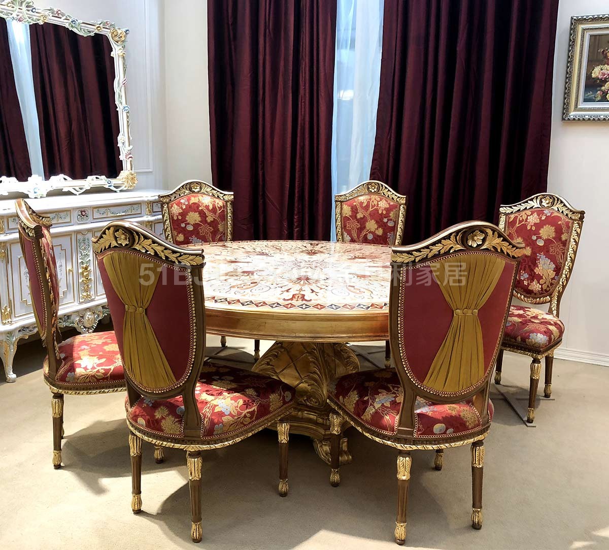 金其利家具米蘭餐桌椅別墅大宅會所歐法拼花新古典加大圓桌