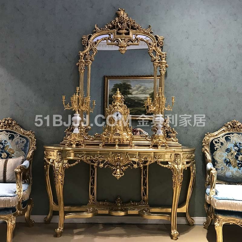 金其利家具米蘭達(dá)實(shí)木雕刻金箔玄關(guān) 展廳現(xiàn)貨