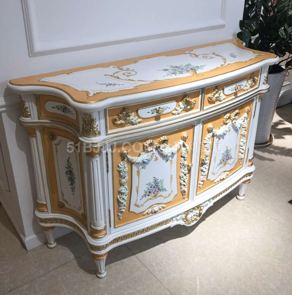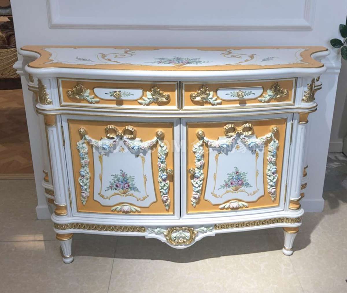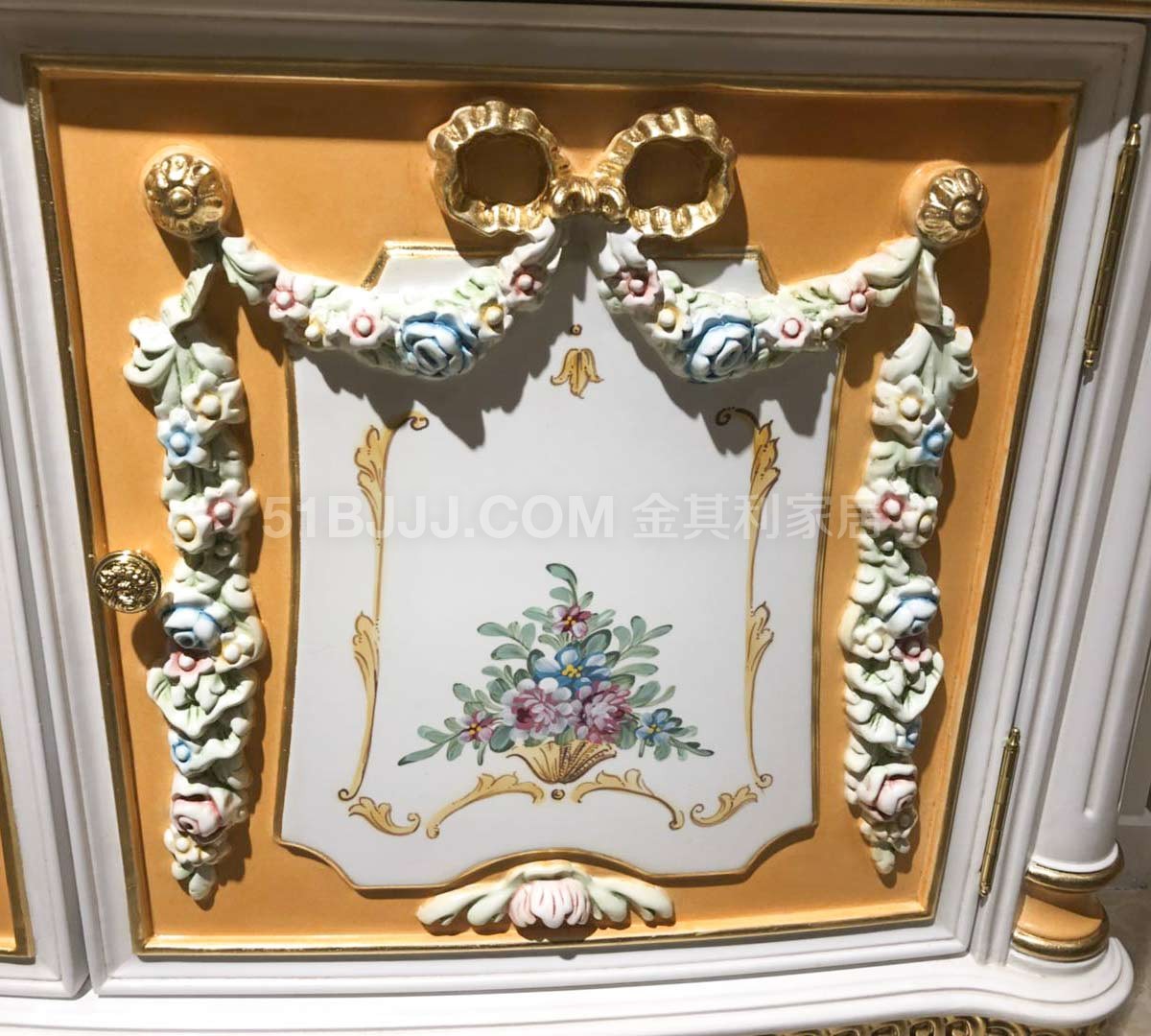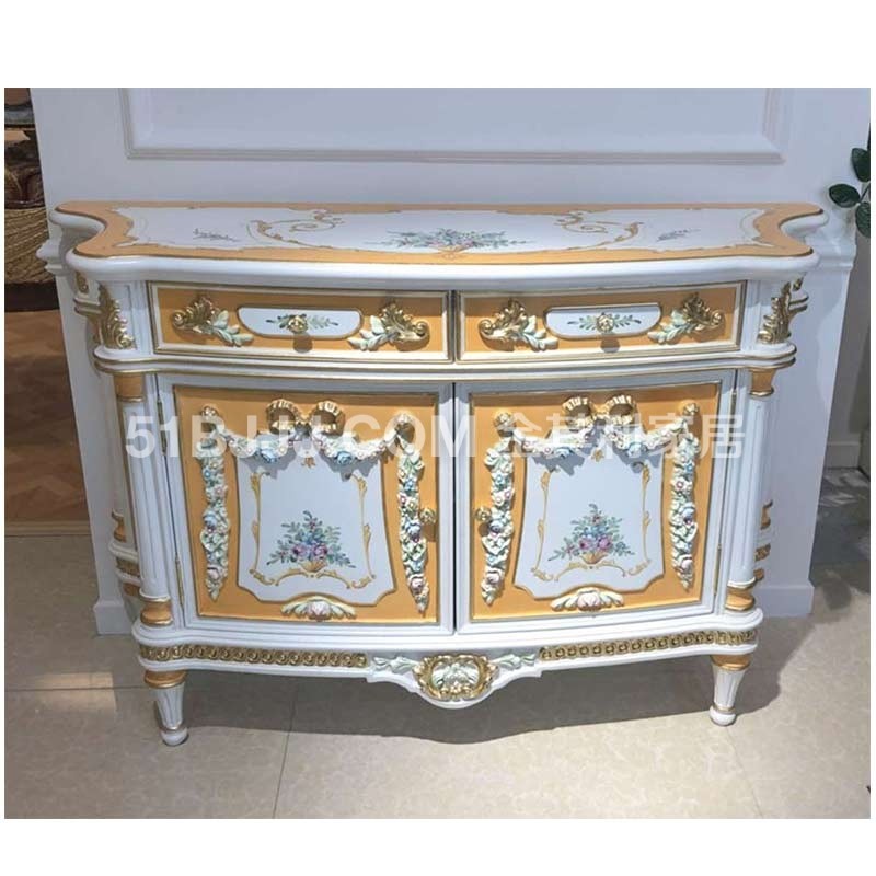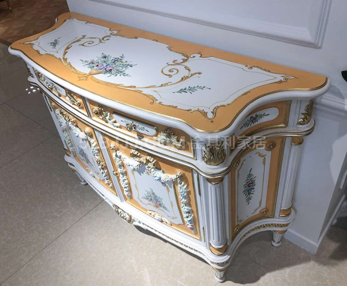 金其利家具米蘭達(dá)實(shí)木雕刻彩繪邊柜 展廳實(shí)拍現(xiàn)貨
