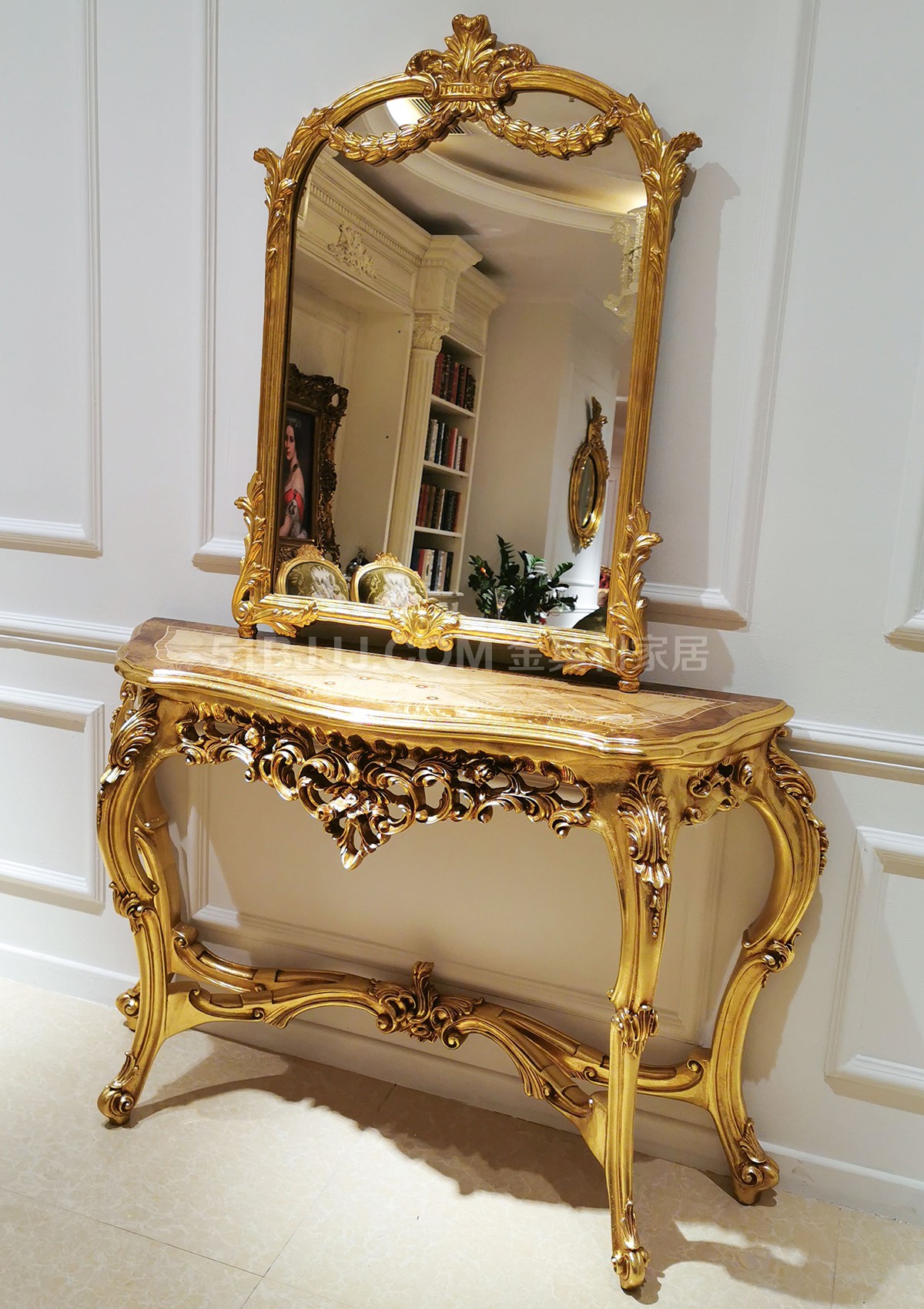 金其利家具米蘭達小玄關(guān)歐式新古典門廳柜金箔長玄關(guān)鏡