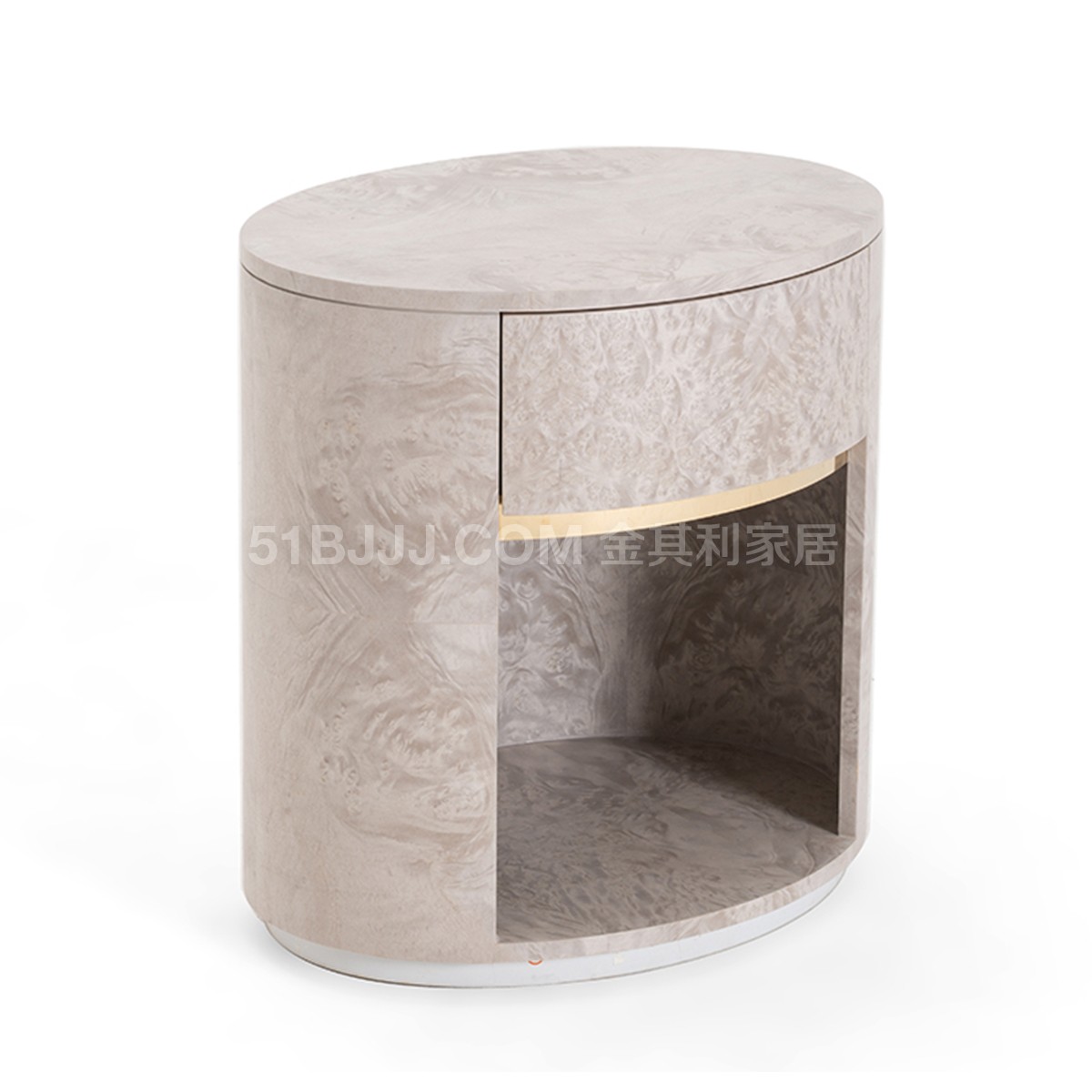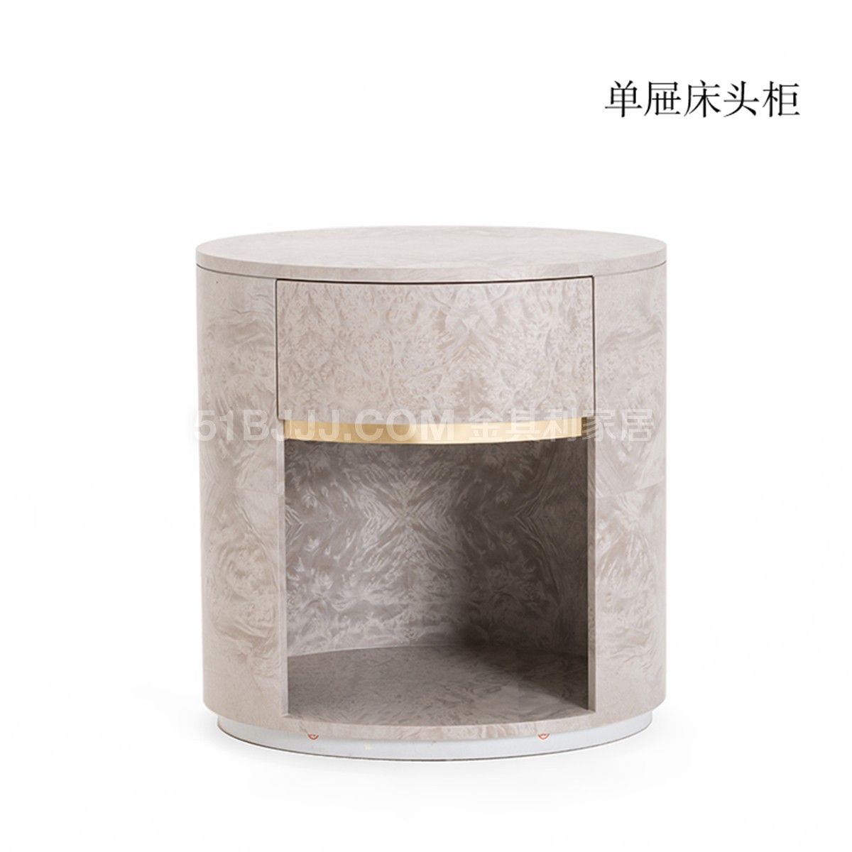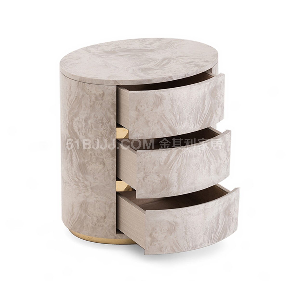 金其利芬迪床頭柜后現(xiàn)代輕奢fendi實(shí)木金屬單屜白樹瘤臥室家具