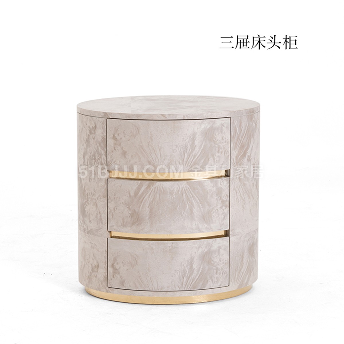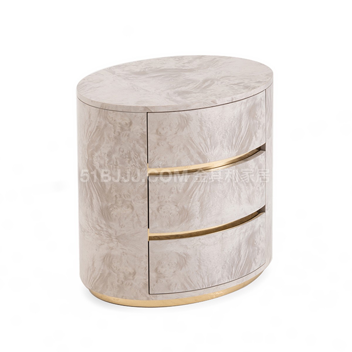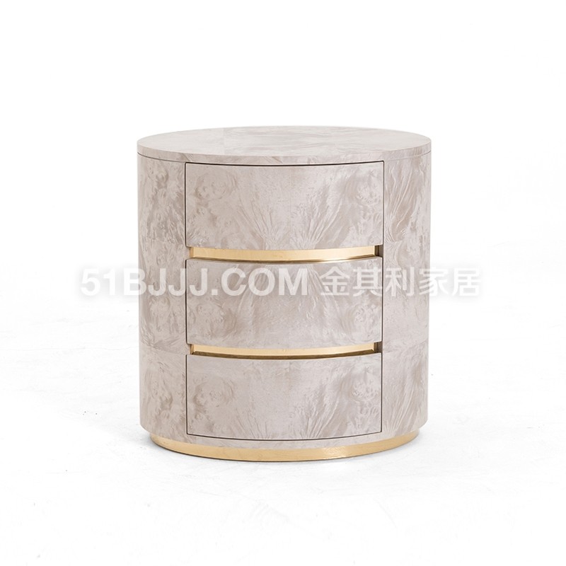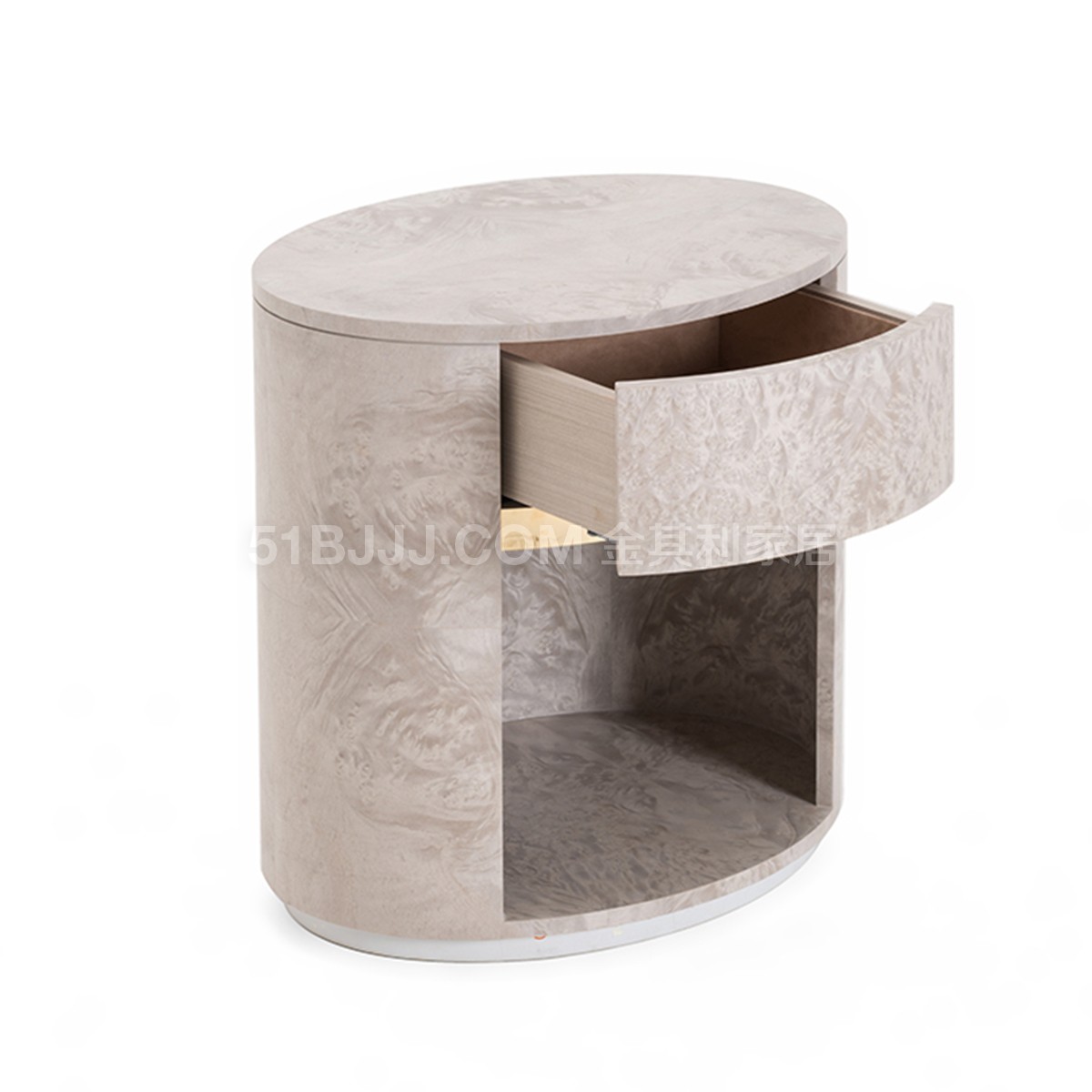 金其利芬迪床頭柜后現(xiàn)代輕奢fendi實(shí)木金屬單屜白樹瘤臥室家具