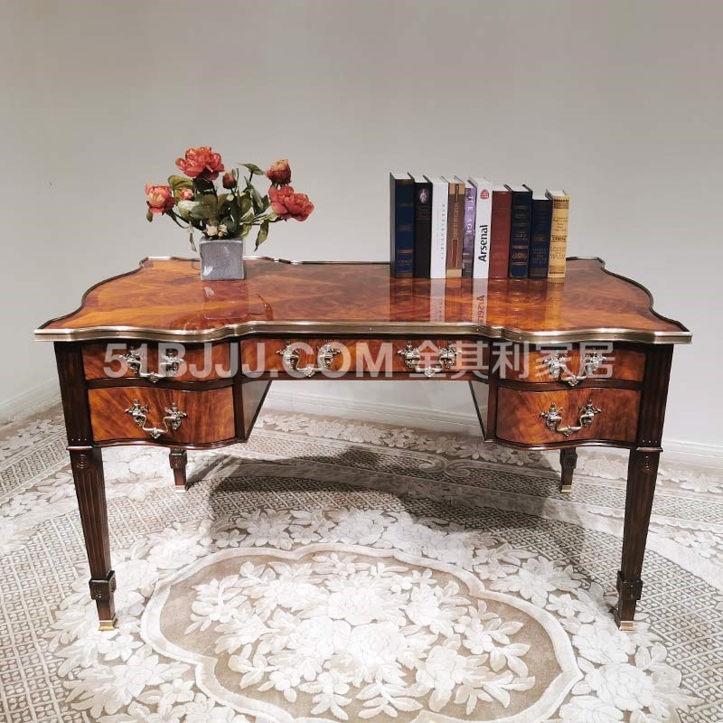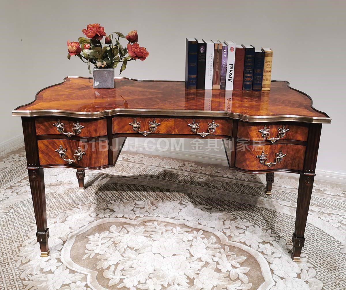 金其利家具亞歷山大進(jìn)口版伯爵書桌銅件鑲嵌英式少年寫字桌