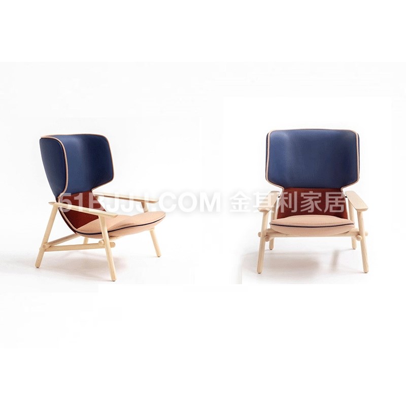 金其利意式頭層牛皮休閑椅客廳藍(lán)色布藝單椅現(xiàn)代輕奢別墅家具