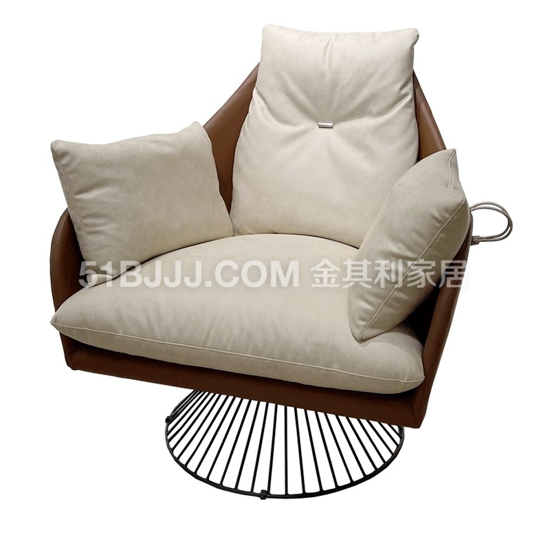 金其利意式輕奢單人轉(zhuǎn)椅現(xiàn)代簡約皮革金屬休閑椅別墅大客廳家具
