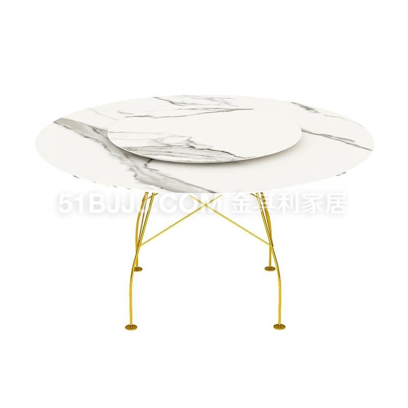 金其利大理石細(xì)花白圓餐桌意式輕奢現(xiàn)代別墅大宅餐廳帶轉(zhuǎn)盤家具
