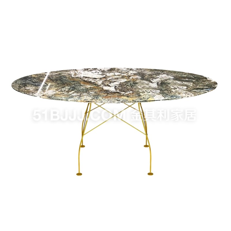 金其利家具橢圓形長餐桌奢石餐臺面金屬底座1.8米2.2別墅大宅款