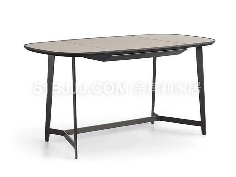金其利現(xiàn)代風意式簡約家用書桌灰色馬鞍皮硬包桌面黑色金屬家具