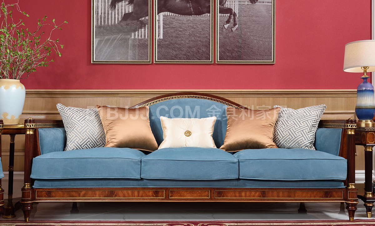 愛德華銅條鑲嵌沙發(fā)組 亞歷山大沙發(fā)英式古堡 皇室桃花心木實木沙發(fā)