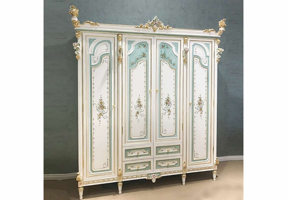 金其利家具米蘭達實木彩繪四門衣柜臥室儲物柜