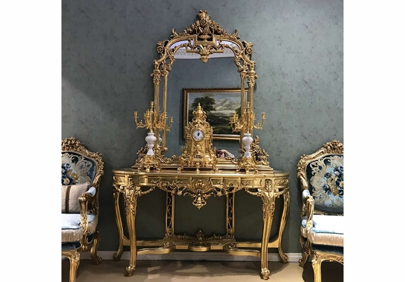 金其利家具米蘭達(dá)小玄關(guān)歐式新古典門廳柜金箔長(zhǎng)玄關(guān)鏡