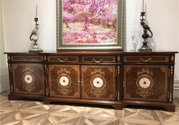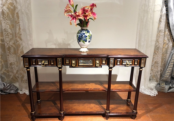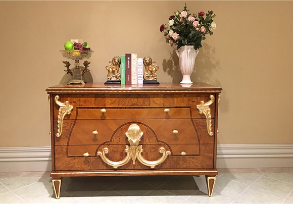 金其利家具 亞歷山大英式古堡沙發(fā)背幾貝殼銅件儲(chǔ)物抽屜款玄關(guān)柜