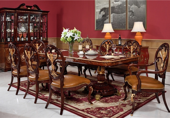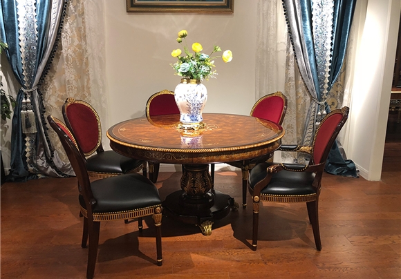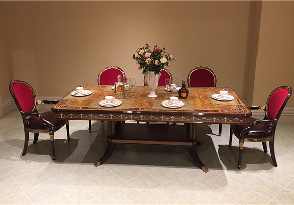 金其利桃花心木貝殼鑲嵌餐桌 皇室英式歐式餐廳組合實拍