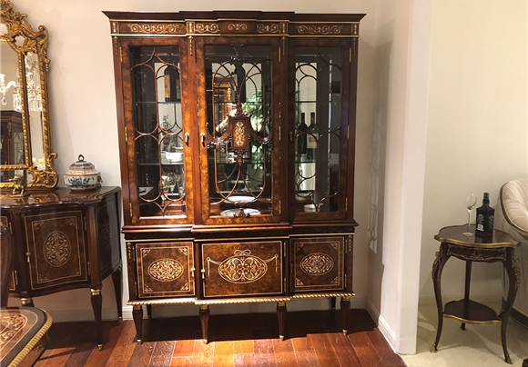 金其利家具英式餐廳酒柜亞歷山大三門酒柜貝殼鑲嵌實拍