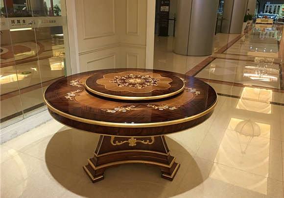 金其利意式嵌貝拼花圓餐桌 可旋轉(zhuǎn)餐臺超大六人桌法式provasi家具實拍