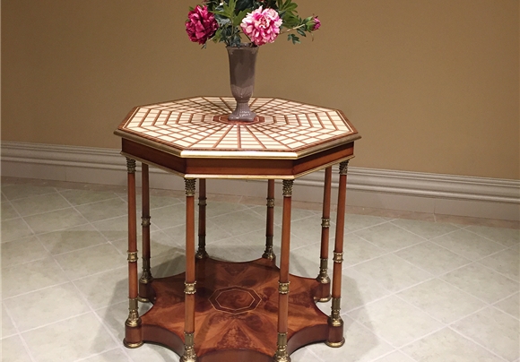 金其利家具英式亞歷山大實(shí)木八角桌客廳邊幾會(huì)所花架實(shí)拍