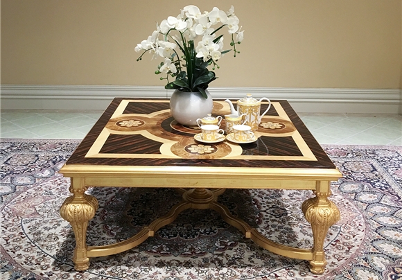 金其利家具意式實(shí)木雕刻方茶幾歐式桌面拼花嵌貝provasi家具實(shí)拍
