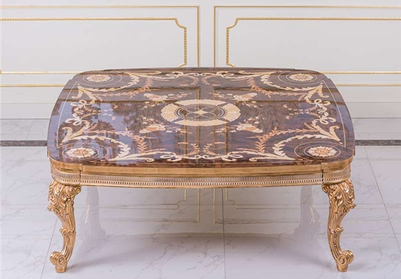 金其利家具米蘭達(dá)實木皮拼花餐桌椅