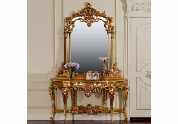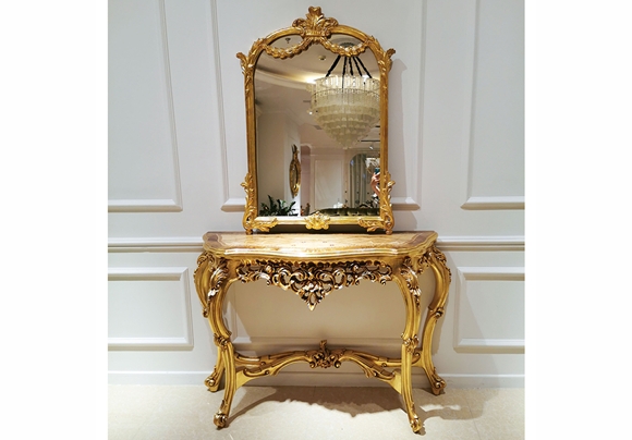 金其利家具米蘭達(dá)小玄關(guān)歐式新古典門廳柜金箔長玄關(guān)鏡