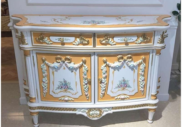 金其利家具米蘭達(dá)實木雕刻彩繪邊柜 展廳實拍現(xiàn)貨