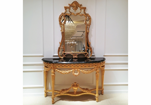 金其利家具意式金箔玄關(guān)柜歐式新古典別墅大宅門廳柜實(shí)木鏡