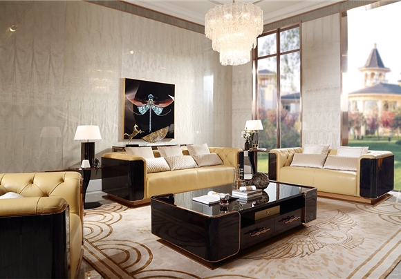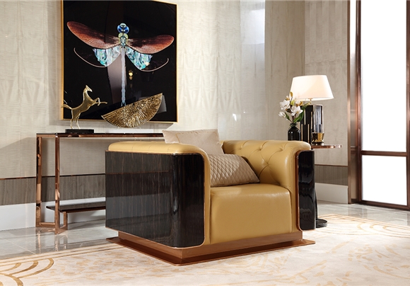 時尚黑檀加小牛皮沙發(fā) 金其利低奢客廳 后現(xiàn)代