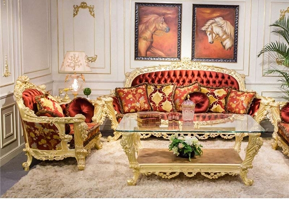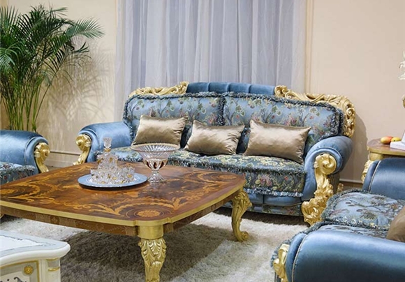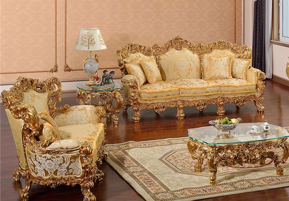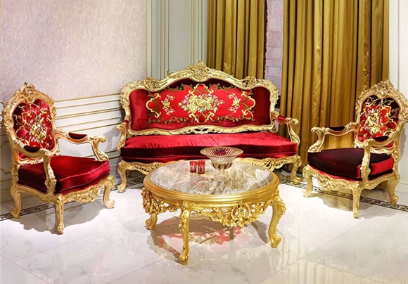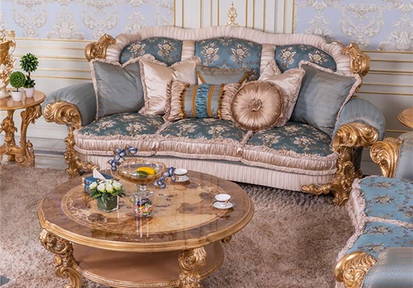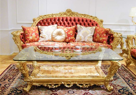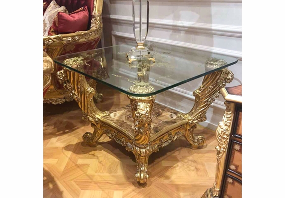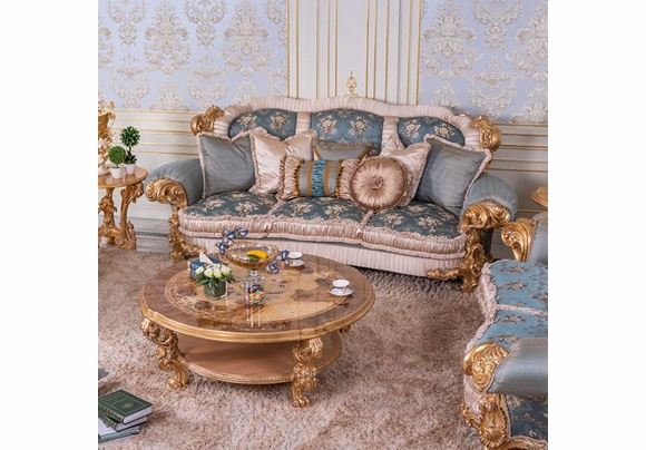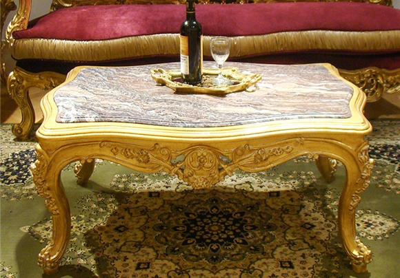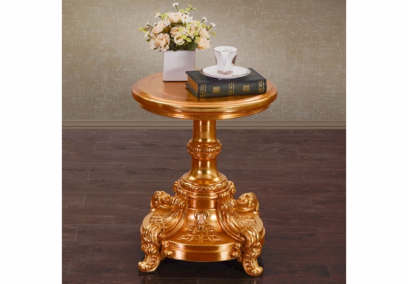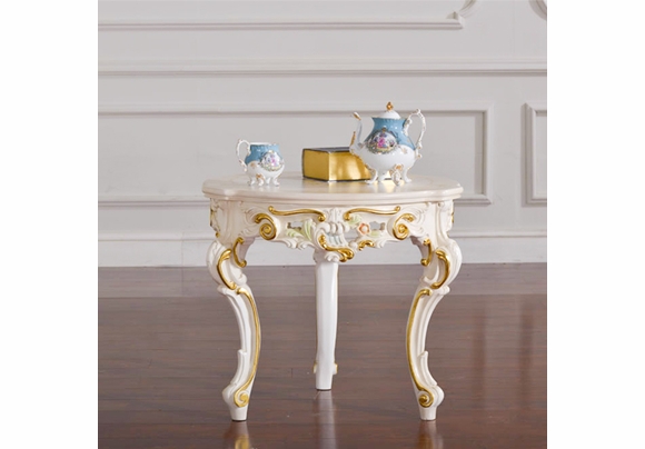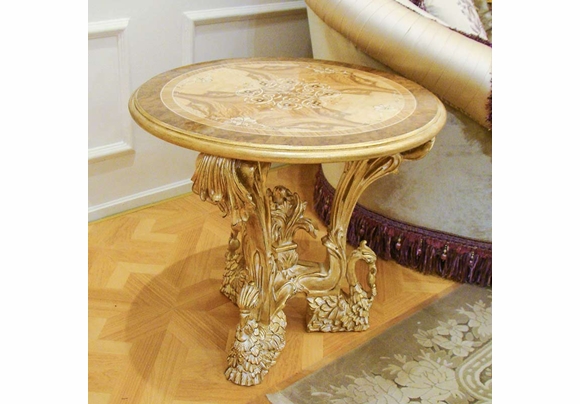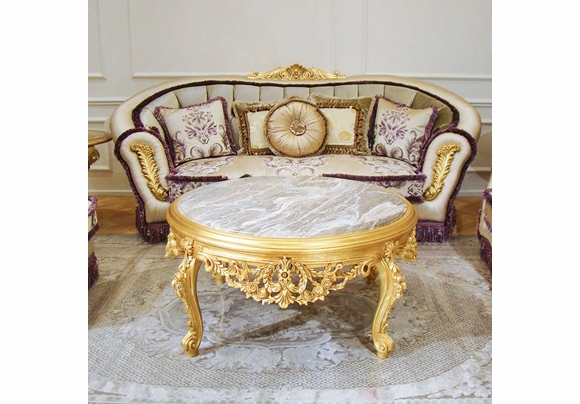 金其利家具大理石圓茶幾法式實(shí)木雕刻金箔家具