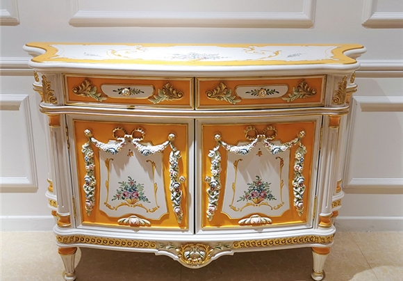 金其利家具米蘭達實木雕刻彩繪邊柜 展廳實拍現(xiàn)貨